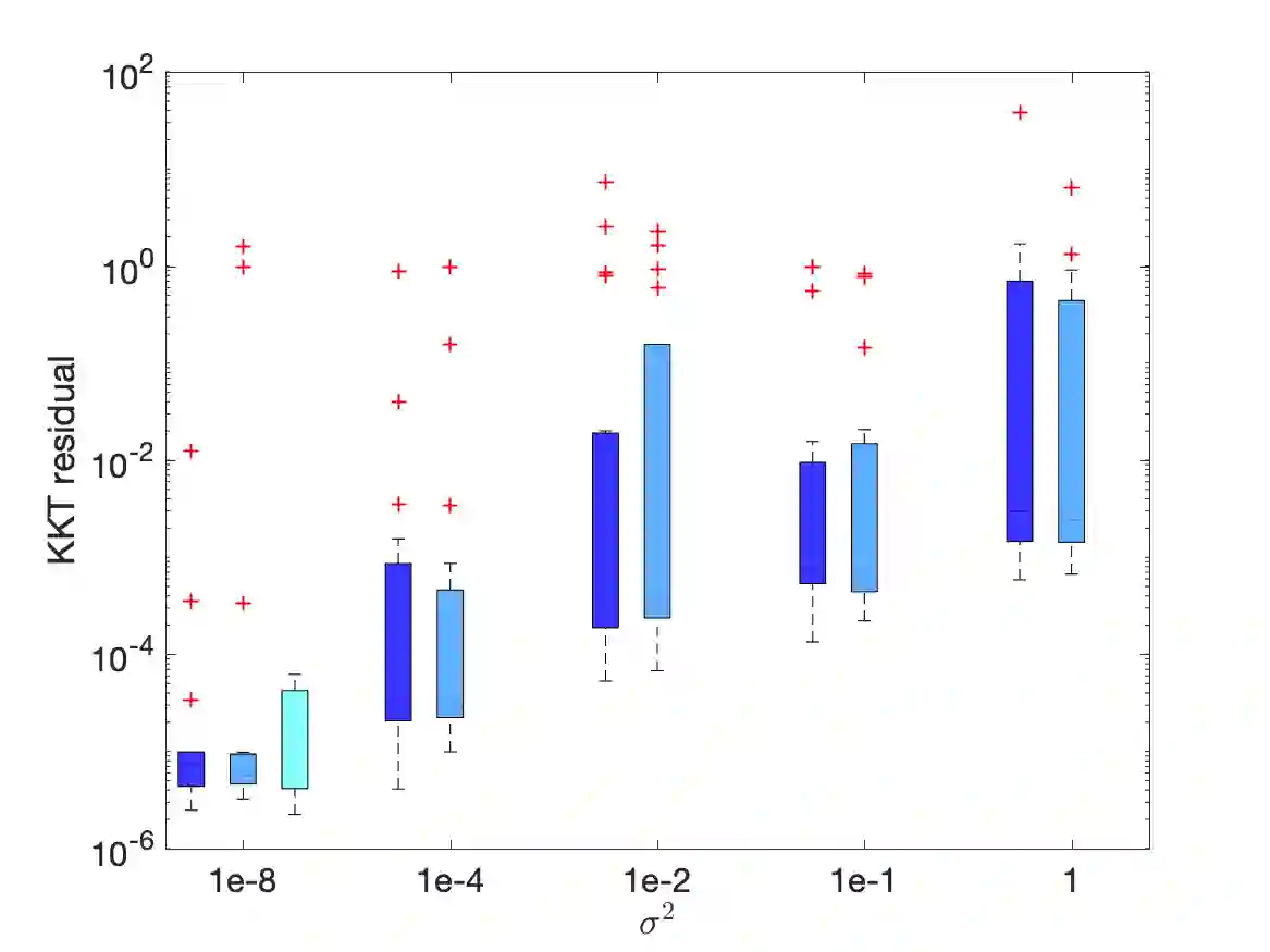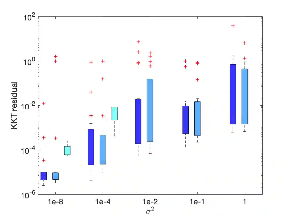 翻译:我们研究的是非线性优化问题,这些问题涉及随机客观和确定性平等以及不平等的限制,这些问题出现在金融、制造业、电力系统和最近的深神经网络等许多应用中。我们建议采用一种主动设置的随机连续二次二次二次编程算法,使用一种截然不同的精确增强的拉格朗江语作为功绩函数。算法通过适应性选择增强拉格朗江语的处罚参数,并进行随机搜索以决定步骤化。全球趋同已经确立:对于任何初始化,KKT残留物的“liminf”几乎可以肯定地归结为零。我们的算法和分析通过允许非线性不平等限制进一步开发了先前的工作 \ cite{Na2021Adaptition}。我们展示了CUTEst测试集收集的非线性问题组的算法的运作情况。