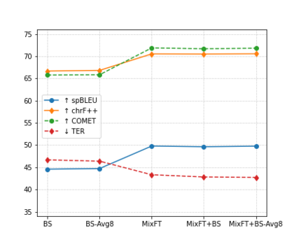翻译:在任何翻译工作流程中,从源源到目标的域知识保护至关重要。翻译行业通常都会接受高度专业化的项目,因为那里几乎没有平行的内地数据。在这种情况下,如果没有足够的内部数据来微调机器翻译模型(MT)模型,则产生符合相关背景的翻译是具有挑战性的。在这项工作中,我们提出一种新的办法,利用最新的、最先进的、经过预先培训的语言模型(LMS)进行适应,为MT提供具体领域的数据增强,模拟(a) 一个小型的双语数据集或(b) 需要翻译的单语文文本的域特性。在这种想法与回译相结合的情况下,我们可以产生大量合成的双语内部数据,供两个案件使用。我们的调查使用最新版的变换器结构。我们采用混合的微调方法,以培训大大改进内部文本翻译的模型。更具体地说,在两种情况下,我们提出的方法都分别改进了(a) 5-6 BLEU 和 2-3 BLEU,分别改进了阿拉伯-英语和英语的自动结果。