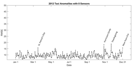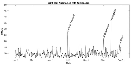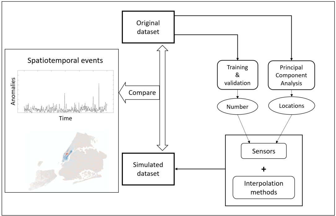 Human movements in urban areas are essential to understand human-environment interactions. However, activities and associated movements are full of uncertainties due to the complexity of a city. In this paper, we propose a novel sensor-based approach for spatiotemporal event detection based on the Discrete Empirical Interpolation Method. Specifically, we first identify the key locations, defined as 'sensors' , which have the strongest correlation with the whole dataset. We then simulate a regular uneventful scenario with the observation data points from those key lo-cations. By comparing the simulated and observation scenarios, events are extracted both spatially and temporally. We apply this method in New York City with taxi trip record data. Results show that this method is effective in detecting when and where events occur.