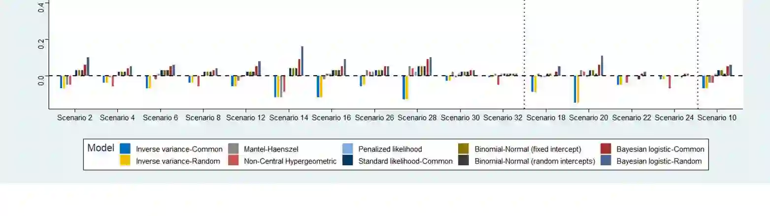 翻译:在文献中,对稀有事件的网络元分析(NMA)很少引起注意,直到最近,利用反向偏差NMA方法对稀有事件的干预网络进行了分析;然而,当情况少见时,该模型提出的正常近似值可能差,影响估计也可能有偏差;这类数据的其他综合方法包括最近将Mantel-Haenszel方法扩大到NMA,或使用非中央超地格分布法。在本篇文章中,我们建议采用一种新的共效NMA方法,即使在对极低或甚至零次于零的事件的干预网络中也可以应用,而不需要研究排斥或任意估计。我们的方法的基础是执行Firth提出的关于减少对NMA模型后勤表达的最大可能性估计的受罚可能性功能。我们的方法的一个局限性是,在多数元分析模型中,不能将异质性作为累加参数加以考虑。然而,我们通过使用两阶段方法的非常小的比较方法,我们经常通过模拟分析方法,用最可靠的方法来分析我们的所有原始分析结果。