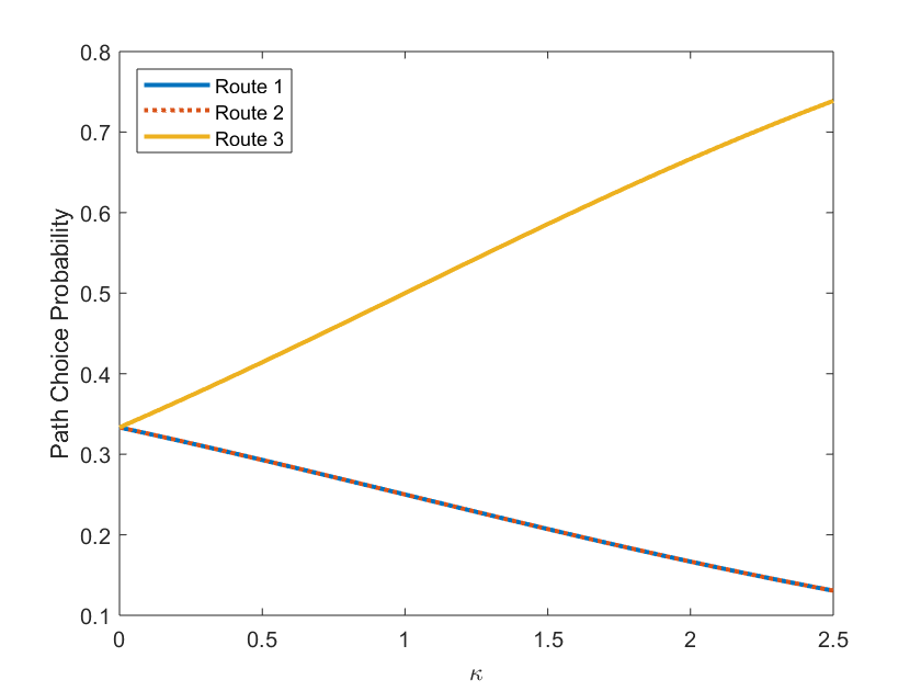 翻译:我们提出一个循环逻辑模型,通过对运输网络的每个节点所设定的选择范围实施一个惩罚性术语来说明选择反向的概念。 我们做出了三点贡献。 首先,我们表明我们的模型克服了路线之间的关联问题,传统逻辑模型的共同陷阱,选择反向模型可以被视为这些模型的替代物。 其次,我们展示了我们的模型如何在路径选择概率方面产生违反规则的情况。特别是,我们显示,网络的去除边缘可能会降低现有路径的概率。最后,我们表明,在选择反常的情况下,增加网络的边缘可以使用户更加糟糕。换句话说,一种布拉斯的悖论可以在交通堵塞之外出现,并且可以用一个参数来测量用户选择反向的程度。我们通过估计这个参数来验证这些贡献,而不是在现实世界运输网络上捕获的GPS交通数据。