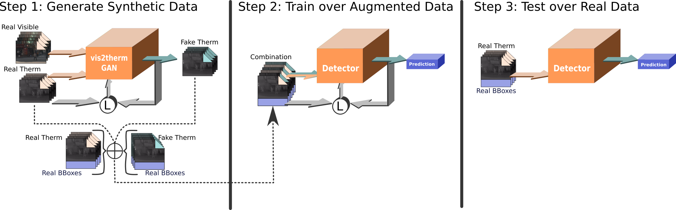 翻译:在本文中,我们提出了一个在热域改进行人探测的方法,使用两个阶段:首先,使用基因数据增强方法,然后使用生成的数据进行域适应方法,对RGB行人探测器进行调适。我们的模型以最小平方生成反versarial网络为基础,经过培训,可以综合输入的 RGB 图像的现实热版本,然后用来增加数量有限的贴标签热行人图像,供培训使用。我们应用了我们的基因数据增强战略,以便使经过预先训练的YOLOv3行人探测器适应在热域探测。实验结果表明我们的方法的有效性:利用现有实际热培训数据不到50 ⁇,依靠我们模型在区域适应阶段产生的综合数据,我们的探测器在KAIST多光谱采集基准上取得最新的最新结果;即使有更多的真实的热数据将GAN生成的图像添加到培训数据结果中,提高性能,从而显示这些图像作为数据增强的有效形式。我们最了解的情况是,我们的探测器能够以最佳的单式检测状态取得最佳的单式检测结果。