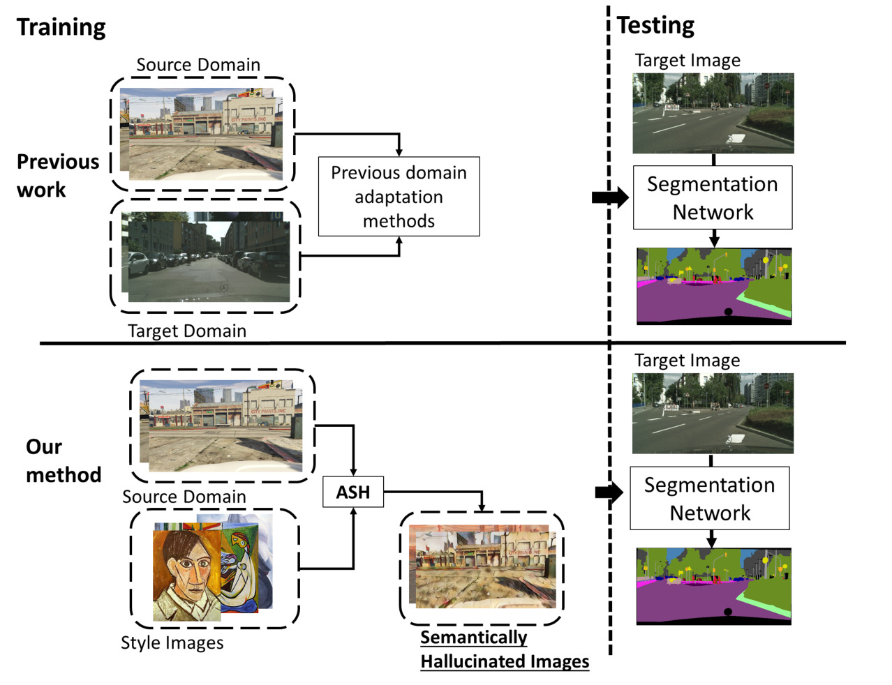 翻译:当测试和训练数据来自不同领域时,进化神经网络可能表现不佳。 这个问题可以通过使用目标域数据对源和目标域特征表示进行匹配来缓解, 目标域数据可能因隐私问题而无法获得。 因此, 需要一些方法在培训期间在不访问目标域数据的情况下将目标域数据普遍化。 在这项工作中, 我们提出一种对抗性幻觉方法, 将等级错觉模块和语义分解模块结合起来。 由于分解性能在不同类别之间不同, 我们设计了一个具有语义性、 风格的幻觉层, 以适应性地对每类进行拼凑。 类顺流化参数来自源域图像分解概率图中的语义知识。 两个模块都存在对抗性竞争, 与产生日益“ 难度” 风格图像的幻觉模块竞争, 以挑战分解模块。 作为回应, 分解性模块在用生成的样本培训时, 其性能在适当的级别困难级别上得到提高。 艺术域适应性实验显示我们拟议方法的功效, 当没有目标域数据可供培训时, 。