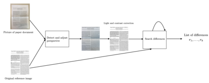 Digital authentication is a mature field, offering a range of solutions with rigorous mathematical guarantees. Nevertheless, paper documents, where cryptographic techniques are not directly applicable, are still widely utilized due to usability and legal reasons. We propose a novel approach to authenticating paper documents using smartphones by taking short videos of them. Our solution combines cryptographic and image comparison techniques to detect and highlight subtle semantic-changing attacks on rich documents, containing text and graphics, that could go unnoticed by humans. We rigorously analyze our approach, proving that it is secure against strong adversaries capable of compromising different system components. We also measure its accuracy empirically on a set of 128 videos of paper documents, half containing subtle forgeries. Our algorithm finds all forgeries accurately (no false alarms) after analyzing 5.13 frames on average (corresponding to 1.28 seconds of video). Highlighted regions are large enough to be visible to users, but small enough to precisely locate forgeries. Thus, our approach provides a promising way for users to authenticate paper documents using conventional smartphones under realistic conditions.