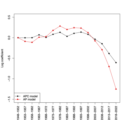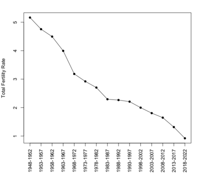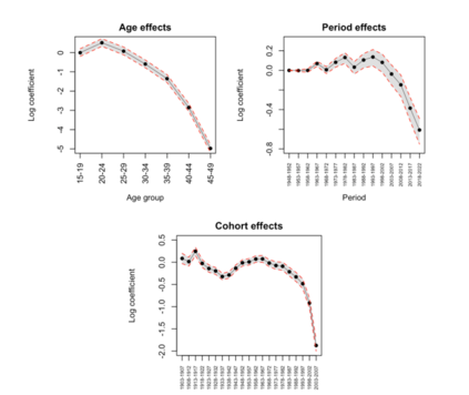 Puerto Rico has one of the lowest total fertility rates (TFR) in the world. Combined with a negative net migration and a high proportion of older adults, its unique situation motivates the need for further demographic analysis. Determining whether low fertility rates are mostly due to period or cohort effects is crucial for developing effective public policies that adapt to changes in fertility and population structures. The main objective of this work is to develop an Age-Period-Cohort model, in order to describe fertility data in Puerto Rico, from 1948-1952 and determine the contribution of period and cohort effects to fertility decline. The APC model was developed following a Bayesian framework, with a Poisson likelihood, RW(2) autorregressive priors for the APC parameters, and Scaled Beta2 priors for the precision parameters.Both frequentist and Bayesian methodologies attribute more importance to cohort effects when explaining fertility changes in Puerto Rico. Birth cohorts born in 1963-1967 onward have notably low fertility rates. There is no evidence of postponement of births in Puerto Rico, contrary to other countries with lowest-low fertility. Both frequentist and Bayesian methodologies attribute more importance to cohort effects when explaining fertility changes in Puerto Rico. Birth cohorts born in 1963-1967 onward have notably low fertility rates. There is no evidence of postponement of births in Puerto Rico, contrary to other countries with lowest-low fertility. This is the first application of APC analysis to fertility data in Puerto Rico, which describes fertility changes in a unique scenario in terms of demographic indicators, and the first APC analysis that shows the predominance of cohort effects when explaining fertility.
