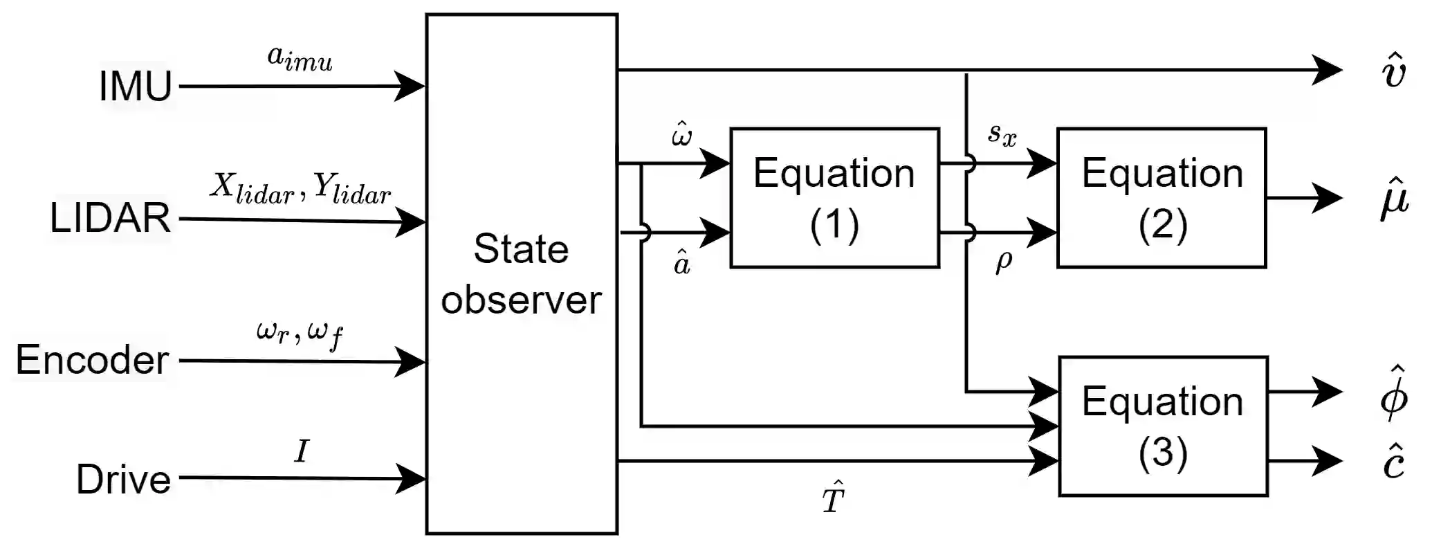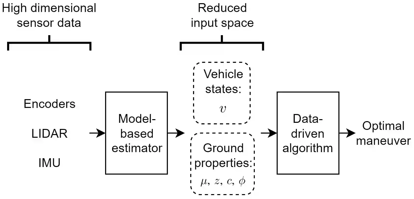 翻译:以地面存在冰雪为特征的冬季条件更可能导致道路事故,本文实验性地证明在1/5级汽车平台上实施的低粘合条件下演变的车辆避免碰撞算法概念,在拟议办法中,模型估算器首先处理IMU、LIDAR和编码器的高维传感器数据,以估计车辆的惯性速度(v美元)、摩擦系数($mu美元)、凝固值($c$)和内部剪切角($\phi$)等与物理有关的车辆和地面条件参数。然后,对数据驱动预测器进行了培训,以预测在估计参数特点情况下进行的最佳操作。实验表明,有可能(1) 实时估计有关地面参数,(2) 根据估计参数确定最佳避免碰撞的动作。