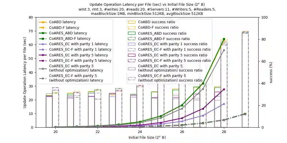 翻译:数据提供是分布式储存系统的最重要特征之一,通过数据复制而成为可能。现在,数据迅速生成,开发高效、可扩展和可靠的储存系统的目标已成为高性能计算的主要挑战之一。在这项工作中,我们开发了一种动态的、稳健的和强烈一致的分布式储存实施,适合于处理大型物体(如文件),我们这样做的方法是整合一个适应性、可重新配置的原子储存框架,称为ARES,并有一个分布式文件系统,称为COBFS,它依靠块分割技术处理大型物体。加上ARES,我们还能够使用一种取消式编码算法,进一步分割我们的数据,并有可能提高复制服务器和运行时间的存储效率。为了测试我们结果的实际性,我们对Emulab和AWS EC2试验台进行了深入的实验性评估,说明我们方法的好处以及其他有趣的交换。