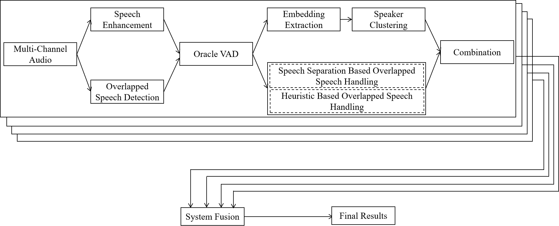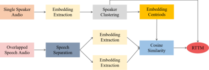 翻译:本文介绍了提交多频道多党会议分流挑战(M2MET)的皇家脸红色扬声器分化系统。我们的系统包括语音增强、语音探测重叠、语音嵌入提取、发言者群集、语音分离和系统融合。在这个系统中,我们做出了三项贡献。首先,我们提出了一个将多频道和基于U-Net的模型相结合的结构,目的是利用这两个单个结构的好处,进行远方重叠语音检测。第二,为了利用重叠语音检测模型帮助发言者分化,提出了基于语音分解的重叠语音处理方法,进一步应用了语音校验技术。第三,我们探索了三个发言者嵌入方法,并在CNCeleb-E测试集上获得了最先进的表现。有了这些提议,我们最好的单个系统将DER从15.25%大幅降至6.40%,而四个系统的组合最终在远场Alimeeting评价集中实现了6.30%的DER。