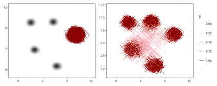 翻译:基于模拟连续时间随机过程的新取样算法(称为Paphy Wid-deministic Markov 进程(PDMPs))已经显示出很大的希望。 但是,这些方法可以艰难地从多式或重型分布中采集样本。 我们展示了在这些情况下如何调制缓冲想法可以改善PDMP的混合。 我们引入了一种根据后表分布状态和反温定义的扩大分布的扩大分布范围,这种分布在反向温度为0和反向温度为1的后表之间,这种分布在可移动分布之间。 反向温度的边缘分布是[0]连续分布的混合体[1]和1:点质量的混合体,这意味着当反向温度为1时我们获得样本,这些样本是从外表提取的,但抽样算法也将探索在较低温度下分布的分布,从而改善混合。 我们展示了如何将PDMPs,特别是Zig-Zag采样器用于从这种扩展分布的采样中进行采样。 由此产生的算法很容易实施,并且我们从实验上显示它能够超越现有基于AFMDMPDMP的采样器。