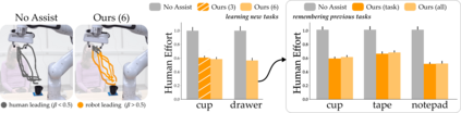 翻译:轮椅上架起的机器人臂(和其他辅助机器人)应该帮助其用户完成日常任务。机器人可以提供这种协助的方式之一是共享自主。在共享自主性的范围内,人类和机器人都可以在共享自主性的范围内对机器人的运动保持控制:随着机器人变得有信心,它可以理解人类想要的东西,它会越来越多地干预任务自动化。但是机器人如何知道人类可能想要执行什么任务呢?今天的共享自主性方法通常取决于先前的知识:例如,机器人必须先先行地了解一套可能的人类自主性。然而,从长远来看,这种先前的知识将不可避免地破碎 -- -- 迟早人类会达到机器人无法预料的目标。在这个文件中,我们提出一个共享自主性的学习方法,利用反复的互动。如果人类每次互动都执行完全不同的任务,那么学习帮助人类是不可能做到的。但是我们的见解是,身体残疾的用户每天重复重要的任务(例如,打开户头,打开户头,煮咖啡,吃晚宴)。我们引入了一种利用这些反复互动性的算法来认识用户的任务,不断学习机器人的任务,不断复制的演示任务。这些任务包括:不断学习的机器人任务,不断学习的技巧。