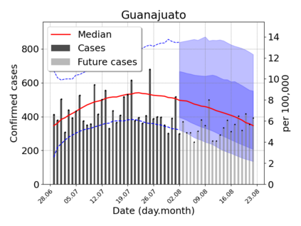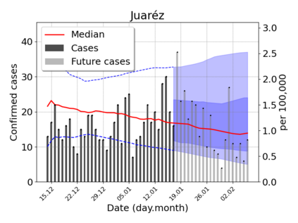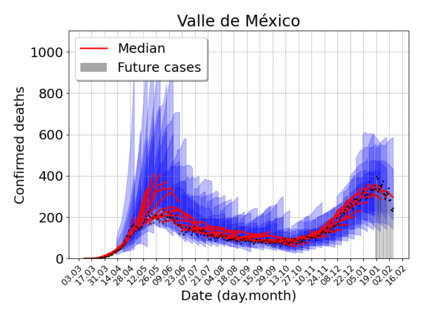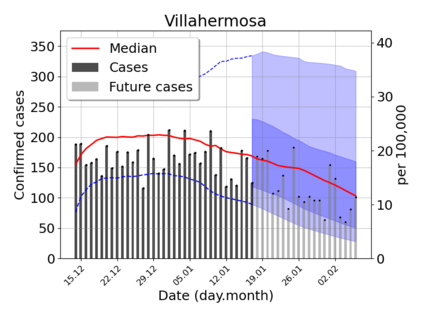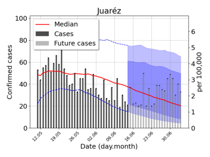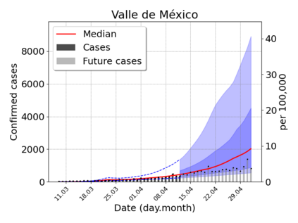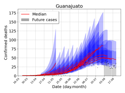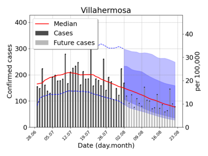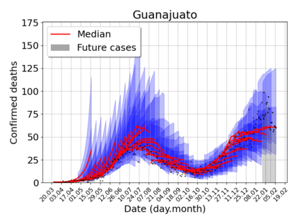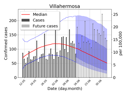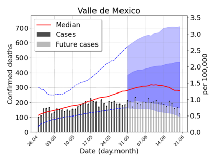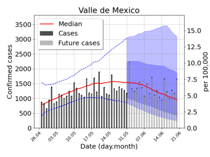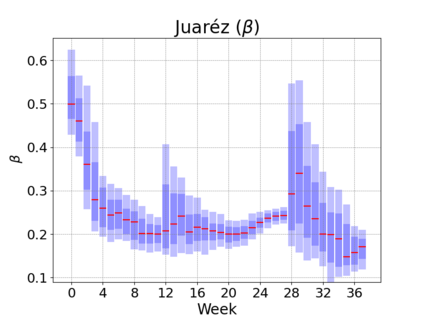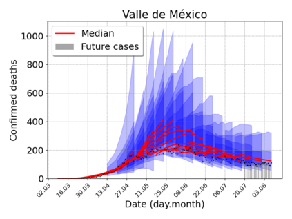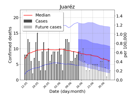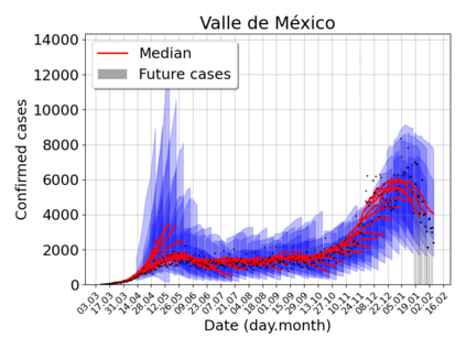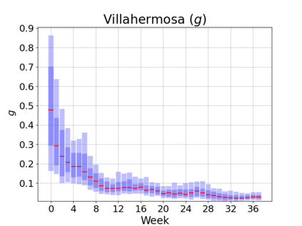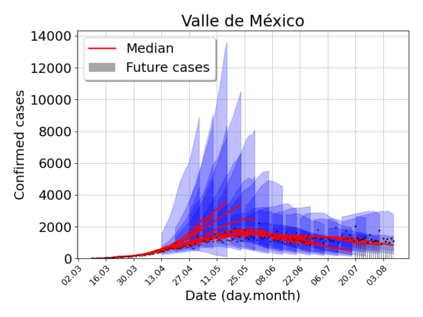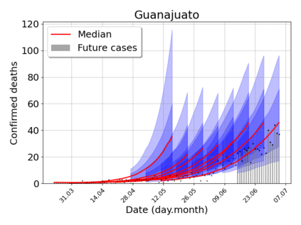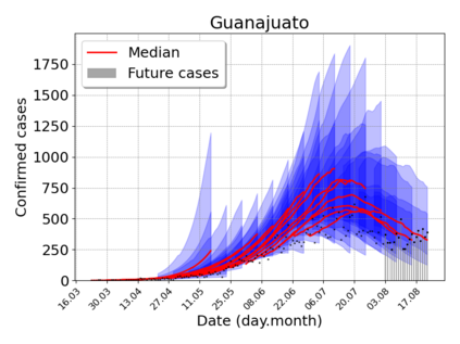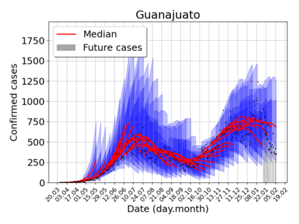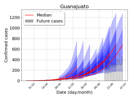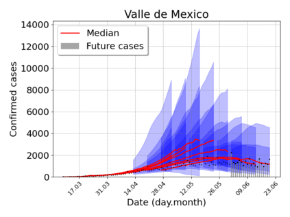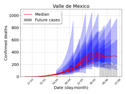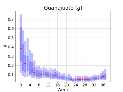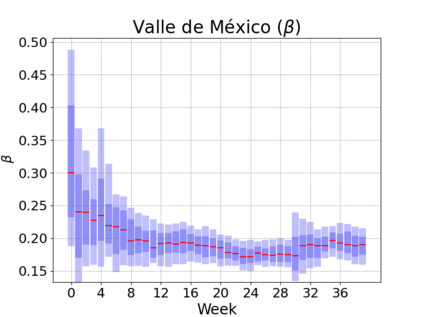 翻译:我们为COVID-19的预测采用了巴耶斯相继数据同化方法,假定有适当的传播、流行和观察模型,并事先得到验证,传播和流行模式编码成动态系统,观察模型取决于动态系统状态变量和参数,并作为一种可能的功能。我们事先收集有效人口规模、动态系统初始条件和传染接触率的分布情况,并利用Markov 链子蒙特卡洛取样来推断和预测流行病爆发时的感兴趣数量(QoI)。随着新的数据的出现,预报会通过一个移动的流行病记录窗口相继更新。以前在新预测时使用动态系统对状态变量的分布进行整理,并按以前的预测加以校准。此外,接触率和有效人口规模的变化是通过相应参数的自动反向模型自然引入的。我们用SEIR型模型和几个墨西哥地方的COVID-19数据来显示我们的预测方法的性能。