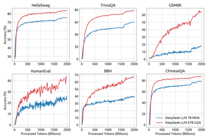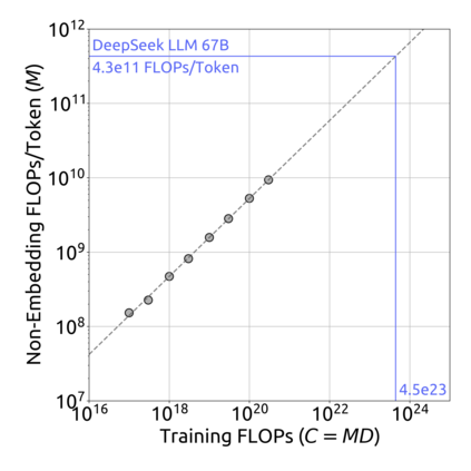 The rapid development of open-source large language models (LLMs) has been truly remarkable. However, the scaling law described in previous literature presents varying conclusions, which casts a dark cloud over scaling LLMs. We delve into the study of scaling laws and present our distinctive findings that facilitate scaling of large scale models in two commonly used open-source configurations, 7B and 67B. Guided by the scaling laws, we introduce DeepSeek LLM, a project dedicated to advancing open-source language models with a long-term perspective. To support the pre-training phase, we have developed a dataset that currently consists of 2 trillion tokens and is continuously expanding. We further conduct supervised fine-tuning (SFT) and Direct Preference Optimization (DPO) on DeepSeek LLM Base models, resulting in the creation of DeepSeek Chat models. Our evaluation results demonstrate that DeepSeek LLM 67B surpasses LLaMA-2 70B on various benchmarks, particularly in the domains of code, mathematics, and reasoning. Furthermore, open-ended evaluations reveal that DeepSeek LLM 67B Chat exhibits superior performance compared to GPT-3.5.