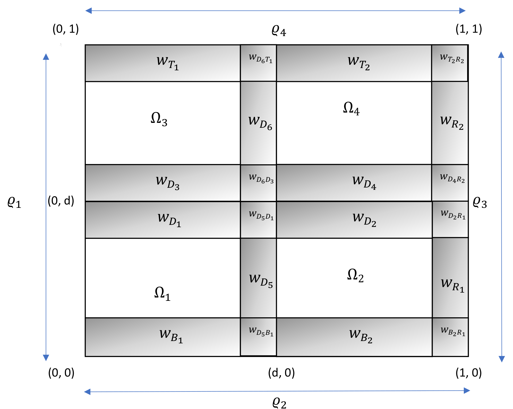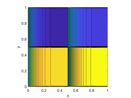 We propose a finite difference scheme for the numerical solution of a two-dimensional singularly perturbed convection-diffusion partial differential equation whose solution features interacting boundary and interior layers, the latter due to discontinuities in source term. The problem is posed on the unit square. The second derivative is multiplied by a singular perturbation parameter, $\epsilon$, while the nature of the first derivative term is such that flow is aligned with a boundary. These two facts mean that solutions tend to exhibit layers of both exponential and characteristic type. We solve the problem using a finite difference method, specially adapted to the discontinuities, and applied on a piecewise-uniform (Shishkin). We prove that that the computed solution converges to the true one at a rate that is independent of the perturbation parameter, and is nearly first-order. We present numerical results that verify that these results are sharp.
