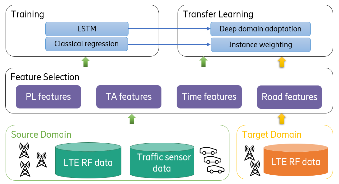 翻译:由于对车辆的需求继续超过新道路的建造速度,我们必须执行改善现有运输基础设施利用的战略。交通传感器是许多此类战略的关键部分,使我们对道路利用情况有了宝贵的洞察力。然而,由于安装和维护交通传感器的成本和周转时间,市政当局和交通当局都希望采用更便宜和可扩缩的替代办法。由于其无处不在的性质以及广泛的全球部署,蜂窝网络提供了这种替代办法。在本文件中,我们提出了一个利用标准的LTE/4G无线电频率性能测量计数来估计交通流量的新办法。问题被作为使用传统和深层学习方法进行监管的倒退任务。我们进一步应用转让学习来补偿许多地点缺乏可用于培训的交通传感器数据的情况。我们表明,我们采用转让学习不仅在时间而且在空间(即城市的各个地方)普及解决方案的做法是有益的。结果非常有希望,而且与相互竞争的解决办法不同,我们的方法利用了总LTE无线电频率反数据,这些数据在保护隐私、随时可用和规模上,没有额外的网络影响。