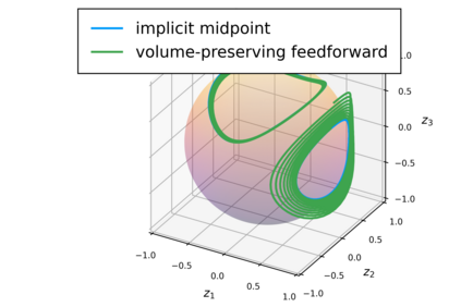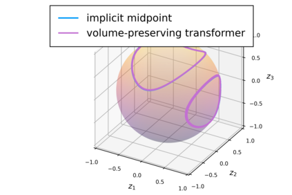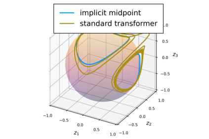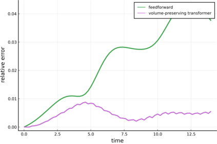 Two of the many trends in neural network research of the past few years have been (i) the learning of dynamical systems, especially with recurrent neural networks such as long short-term memory networks (LSTMs) and (ii) the introduction of transformer neural networks for natural language processing (NLP) tasks. Both of these trends have created enormous amounts of traction, particularly the second one: transformer networks now dominate the field of NLP. Even though some work has been performed on the intersection of these two trends, those efforts was largely limited to using the vanilla transformer directly without adjusting its architecture for the setting of a physical system. In this work we use a transformer-inspired neural network to learn a dynamical system and furthermore (for the first time) imbue it with structure-preserving properties to improve long-term stability. This is shown to be of great advantage when applying the neural network to real world applications.