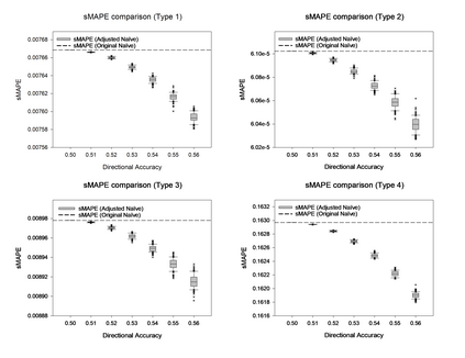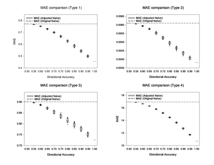 This study introduces a movement-prediction-adjusted na\"ive forecast, which is the original na\"ive forecast with the addition of a weighted movement prediction term, in the context of forecasting time series that exhibit symmetric random walk properties. The weight of the movement term is determined by two parameters: one reflecting the directional accuracy and the other representing the mean absolute increment. The settings of the two parameters involve a trade-off: larger values may yield meaningful gains over the original na\"ive forecast, whereas smaller values often render the adjusted forecast more reliable. This trade-off can be managed by empirically setting the parameters using sliding windows on in-sample data. To statistically test the performance of the adjusted na\"ive forecast under different directional accuracy levels, we used four synthetic time series to simulate multiple forecast scenarios, assuming that for each directional accuracy level, diverse movement predictions were provided. The simulation results show that as the directional accuracy increases, the error of the adjusted na\"ive forecast decreases. In particular, the adjusted na\"ive forecast achieves statistically significant improvements over the original na\"ive forecast, even under a low directional accuracy of slightly above 0.50. This finding implies that the movement-prediction-adjusted na\"ive forecast can serve as a new optimal point forecast for time series with symmetric random walk characteristics if consistent movement prediction can be provided.