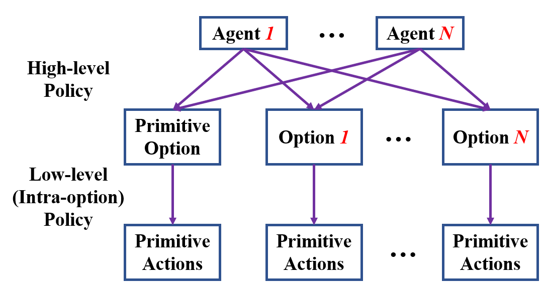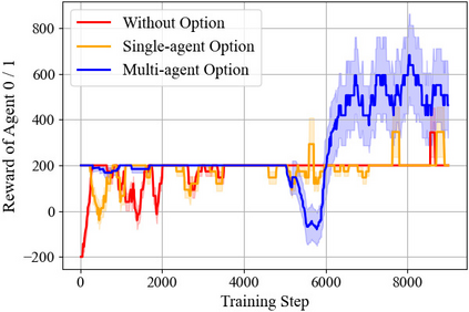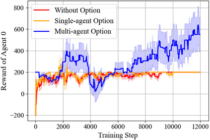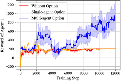 The use of skills (a.k.a., options) can greatly accelerate exploration in reinforcement learning, especially when only sparse reward signals are available. While option discovery methods have been proposed for individual agents, in multi-agent reinforcement learning settings, discovering collaborative options that can coordinate the behavior of multiple agents and encourage them to visit the under-explored regions of their joint state space has not been considered. In this case, we propose Multi-agent Deep Covering Option Discovery, which constructs the multi-agent options through minimizing the expected cover time of the multiple agents' joint state space. Also, we propose a novel framework to adopt the multi-agent options in the MARL process. In practice, a multi-agent task can usually be divided into some sub-tasks, each of which can be completed by a sub-group of the agents. Therefore, our algorithm framework first leverages an attention mechanism to find collaborative agent sub-groups that would benefit most from coordinated actions. Then, a hierarchical algorithm, namely HA-MSAC, is developed to learn the multi-agent options for each sub-group to complete their sub-tasks first, and then to integrate them through a high-level policy as the solution of the whole task. This hierarchical option construction allows our framework to strike a balance between scalability and effective collaboration among the agents. The evaluation based on multi-agent collaborative tasks shows that the proposed algorithm can effectively capture the agent interactions with the attention mechanism, successfully identify multi-agent options, and significantly outperforms prior works using single-agent options or no options, in terms of both faster exploration and higher task rewards.