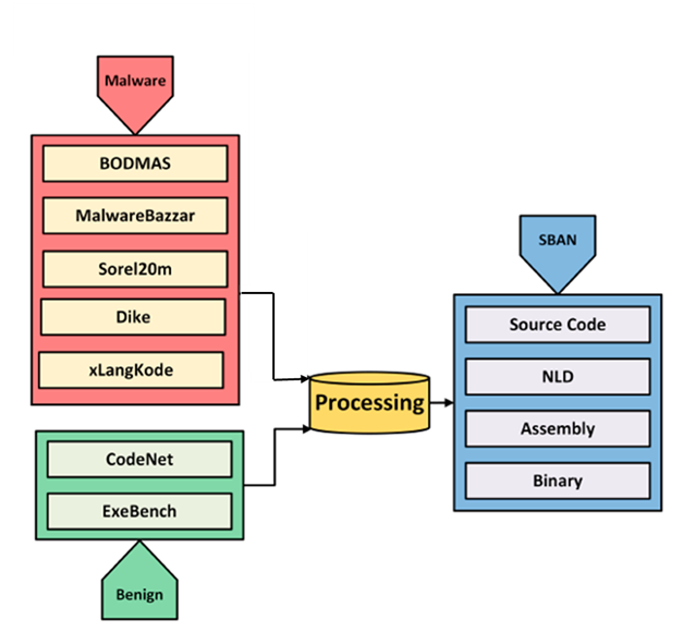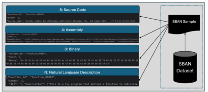 This paper introduces SBAN (Source code, Binary, Assembly, and Natural Language Description), a large-scale, multi-dimensional dataset designed to advance the pre-training and evaluation of large language models (LLMs) for software code analysis. SBAN comprises more than 3 million samples, including 2.9 million benign and 672,000 malware respectively, each represented across four complementary layers: binary code, assembly instructions, natural language descriptions, and source code. This unique multimodal structure enables research on cross-representation learning, semantic understanding of software, and automated malware detection. Beyond security applications, SBAN supports broader tasks such as code translation, code explanation, and other software mining tasks involving heterogeneous data. It is particularly suited for scalable training of deep models, including transformers and other LLM architectures. By bridging low-level machine representations and high-level human semantics, SBAN provides a robust foundation for building intelligent systems that reason about code. We believe that this dataset opens new opportunities for mining software behavior, improving security analytics, and enhancing LLM capabilities in pre-training and fine-tuning tasks for software code mining.