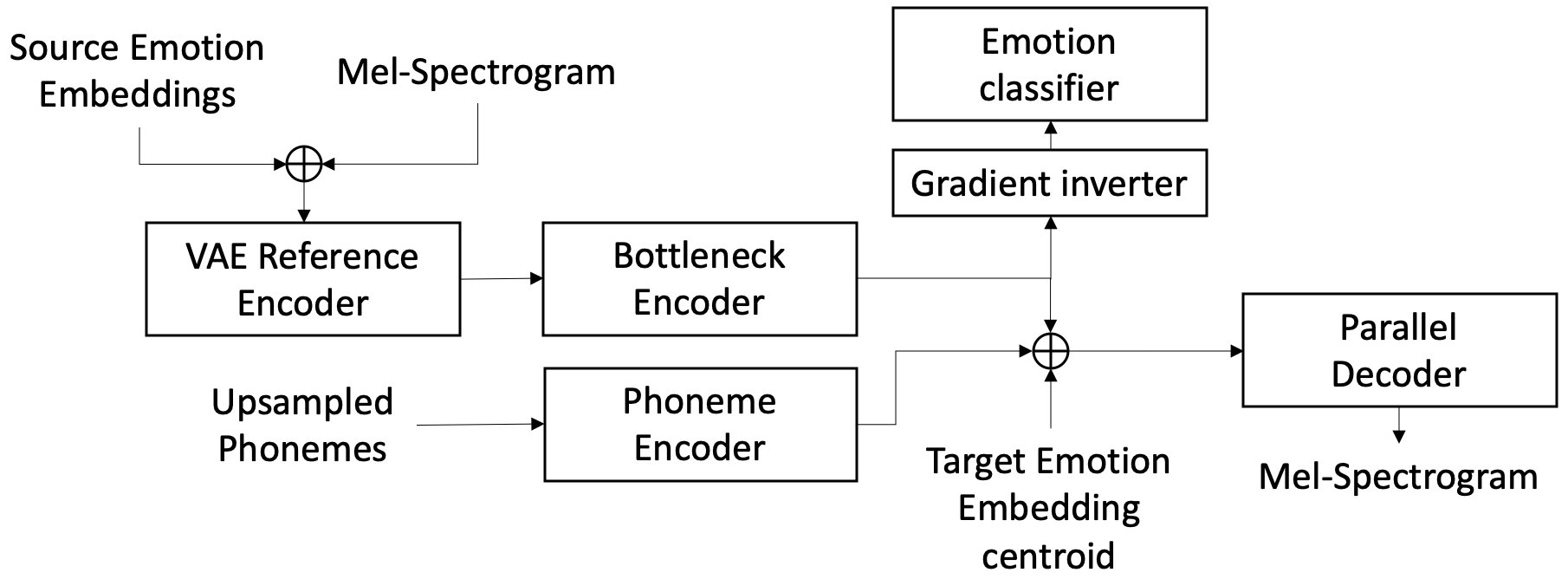 翻译:情感声音转换模型在不改变语言身份或语言内容的情况下适应言语中的情感。 它们比文本到语音模型更缺乏数据, 并且能够为下游任务生成大量情感数据 。 在此工作中, 我们提议 EmoCat, 这是一种语言不可知的情感声音转换模型 。 它通过利用大量美国英语情感数据, 实现了德国语情感转换质量不小于45分钟的德国语情感转换 。 EmoCat 是一种基于复制器( CopyCat ) 的编码解密模型。 我们使用对抗性培训将情感从编码器中渗漏到解密器中。 我们使用对抗性培训将情感泄漏到解密器中。 对抗性培训通过对梯度转换到真正反向梯度的新贡献而得到改进 。 这只能消除泄漏的信息, 并且通过更高的转换性能而更佳的调调。 评估显示, Emocat 可以转换成不同的情感, 但与录音相比, 特别是非常直观的情绪变异。 EmoCat 能够实现方的音质量, 5个测试的录音记录。
