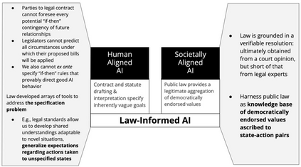 翻译:目前,我们无法以可靠地指导AI行为的方式确定人的目标和社会价值观。法律制定和法律解释形成了一种计算引擎,将不透明的人类价值观转化为可辨认的指令。“法律信息规则”是研究议程,捕捉复杂的计算法律程序,并将其嵌入AI。类似于法律合同的当事方如何无法预见其未来关系的所有潜在应急,立法者无法预测其拟议法案将适用的所有情况,我们无法预言将适用他们的良好AI行为的具体规则。法律理论和实践已经发展了各种工具来解决这些规格问题。例如,法律标准允许人类发展共同的理解,并使它们适应新情况。与法律的更直截了当的使用相比(例如,通过制裁威胁来遏制不良行为),立法者无法预测其未来关系的所有潜在应急情况,以及立法者无法预测其拟议法案将适用的所有情况。我们无法预知,我们通过法律程序产生的数据(法律制定、法定解释、合同起草、法律标准的应用、法律推理等)能够正确地理解这些规格问题。法律标准的法律标准允许人类发展共同的理解,而法律的精确性法律的精确性规则最终用于人类法律的准确性,从而改善对AI的准确性法律的准确性法律的准确性,从而改进了对法律的准确性法律的准确性法律的准确性法律的准确性法律的稳定性,从而改进了法律,从而改进了对法律的稳定性的稳定性,从而改进了人们对性法律的稳定性法律的稳定性法律的稳定性,从而改进了对法律的稳定性的稳定性的稳定性的稳定性的稳定性的稳定性的稳定性的稳定性的稳定性的稳定性的稳定性的稳定性的稳定性的稳定性的稳定性的稳定性的稳定性的稳定性的稳定性的稳定性的稳定性的稳定性的稳定性的稳定性的稳定性的稳定性的稳定性的稳定性的实现。