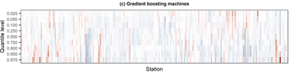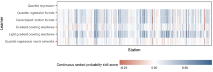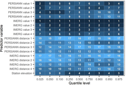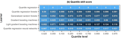 To form precipitation datasets that are accurate and, at the same time, have high spatial densities, data from satellites and gauges are often merged in the literature. However, uncertainty estimates for the data acquired in this manner are scarcely provided, although the importance of uncertainty quantification in predictive modelling is widely recognized. Furthermore, the benefits that machine learning can bring to the task of providing such estimates have not been broadly realized and properly explored through benchmark experiments. The present study aims at filling in this specific gap by conducting the first benchmark tests on the topic. On a large dataset that comprises 15-year-long monthly data spanning across the contiguous United States, we extensively compared six learners that are, by their construction, appropriate for predictive uncertainty quantification. These are the quantile regression (QR), quantile regression forests (QRF), generalized random forests (GRF), gradient boosting machines (GBM), light gradient boosting machines (LightGBM) and quantile regression neural networks (QRNN). The comparison referred to the competence of the learners in issuing predictive quantiles at nine levels that facilitate a good approximation of the entire predictive probability distribution, and was primarily based on the quantile and continuous ranked probability skill scores. Three types of predictor variables (i.e., satellite precipitation variables, distances between a point of interest and satellite grid points, and elevation at a point of interest) were used in the comparison and were additionally compared with each other. This additional comparison was based on the explainable machine learning concept of feature importance. The results suggest that the order from the best to the worst of the learners for the task investigated is the following: LightGBM, QRF, GRF, GBM, QRNN and QR...