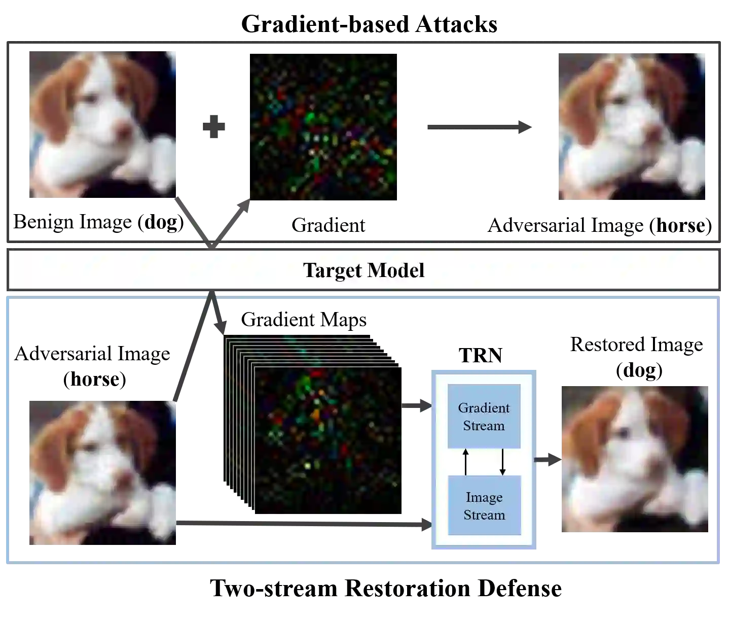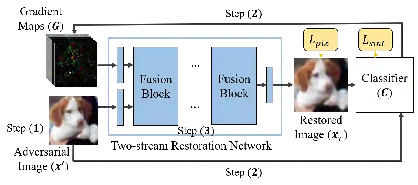 翻译:深层学习模型被证明很容易受到对抗性攻击。 特别是, 梯度攻击最近显示的成功率很高。 梯度测量每个图像像素如何影响模型输出, 模型输出包含产生恶意扰动的关键信息。 在本文中, 我们显示, 梯度也可以被作为一种强大的武器来防御对抗性攻击。 通过使用梯度图和对抗性图像作为投入, 我们建议建立一个双流恢复网络( TRN) 来恢复对抗性图像。 为了以两种输入流最优化地恢复被包围的图像, 提议了一个梯度地图动画机制来估计对抗性图像的梯度, 而在TRN 中设计了一个混凝土块, 以探索和整合两条流的信息。 一旦经过培训, 我们的梯度梯度可以防御广泛的攻击方法, 而不会显著降低良性投入的性能。 此外, 我们的方法是普遍的、可扩展的和难以绕过的。 CIFAR10、 SVHN 和 Fashon MNIST的实验性结果显示, 我们的方法超越了艺术的状态防御方法。