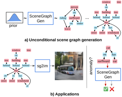 Despite recent advancements in single-domain or single-object image generation, it is still challenging to generate complex scenes containing diverse, multiple objects and their interactions. Scene graphs, composed of nodes as objects and directed-edges as relationships among objects, offer an alternative representation of a scene that is more semantically grounded than images. We hypothesize that a generative model for scene graphs might be able to learn the underlying semantic structure of real-world scenes more effectively than images, and hence, generate realistic novel scenes in the form of scene graphs. In this work, we explore a new task for the unconditional generation of semantic scene graphs. We develop a deep auto-regressive model called SceneGraphGen which can directly learn the probability distribution over labelled and directed graphs using a hierarchical recurrent architecture. The model takes a seed object as input and generates a scene graph in a sequence of steps, each step generating an object node, followed by a sequence of relationship edges connecting to the previous nodes. We show that the scene graphs generated by SceneGraphGen are diverse and follow the semantic patterns of real-world scenes. Additionally, we demonstrate the application of the generated graphs in image synthesis, anomaly detection and scene graph completion.