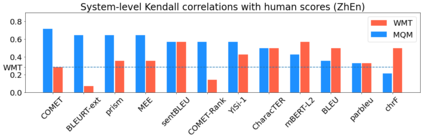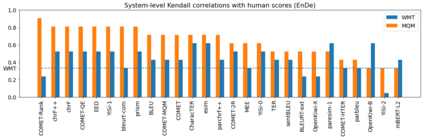翻译:对现代高质量机器翻译系统进行人类评价是一个棘手的问题,越来越多的证据表明,评价程序不足可能导致错误的结论。虽然对人的评价进行了大量研究,但该领域仍缺乏普遍接受的标准程序。作为实现这一目标的一个步骤,我们根据多层面高质量计量(MQM)框架,提出了一个基于明确错误分析的评价方法。我们进行了迄今为止最大的MQM研究,利用专业笔译员提供的全面文件背景说明,用两种语文对WMT 2020 顶级系统的产出进行评分,用两种语文分担任务。我们广泛分析了由此产生的数据,除其他结果外,我们发现所评价的系统与WMT人群工人建立的系统有显著差异,明显偏重于人类而不是机器产出。令人惊讶的是,我们还发现基于预先训练的嵌入的自动测量仪能够超越人类人群工人。我们公开提供我们的软件,以供进一步研究。