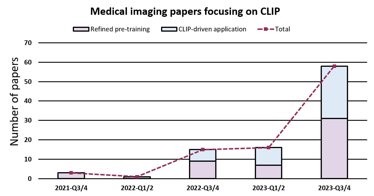 Contrastive Language-Image Pre-training (CLIP), a simple yet effective pre-training paradigm, successfully introduces text supervision to vision models. It has shown promising results across various tasks, attributable to its generalizability and interpretability. The use of CLIP has recently gained increasing interest in the medical imaging domain, serving both as a pre-training paradigm for aligning medical vision and language, and as a critical component in diverse clinical tasks. With the aim of facilitating a deeper understanding of this promising direction, this survey offers an in-depth exploration of the CLIP paradigm within the domain of medical imaging, regarding both refined CLIP pre-training and CLIP-driven applications. In this study, We (1) start with a brief introduction to the fundamentals of CLIP methodology. (2) Then, we investigate the adaptation of CLIP pre-training in the medical domain, focusing on how to optimize CLIP given characteristics of medical images and reports. (3) Furthermore, we explore the practical utilization of CLIP pre-trained models in various tasks, including classification, dense prediction, and cross-modal tasks. (4) Finally, we discuss existing limitations of CLIP in the context of medical imaging and propose forward-looking directions to address the demands of medical imaging domain. We expect that this comprehensive survey will provide researchers in the field of medical image analysis with a holistic understanding of the CLIP paradigm and its potential implications. The project page can be found on https://github.com/zhaozh10/Awesome-CLIP-in-Medical-Imaging.