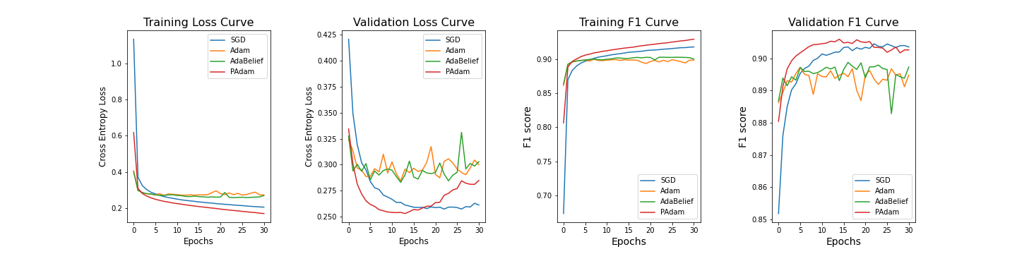 翻译:Adam被广泛应用于神经网络的训练。各种具有不同特点的亚当方法被推出。最近,在社区中引入了两个新的亚当优化器,Adabelief和Padam。我们分析了这两个亚当优化器,并在图像分类的设想中将它们与其他常规优化器(Adam,SGD + Momentum)进行比较。我们评估了AlexNet上的这些优化算法和VGGNet的简化版本以及使用EMNIST数据集的ResNet的性能。 (基准算法可在以下网址查阅:\hyperref[https://github.com/chuyunjun/ProjectCSC413]{https://github.com/chuyunjun/ProjectCSC413})。
