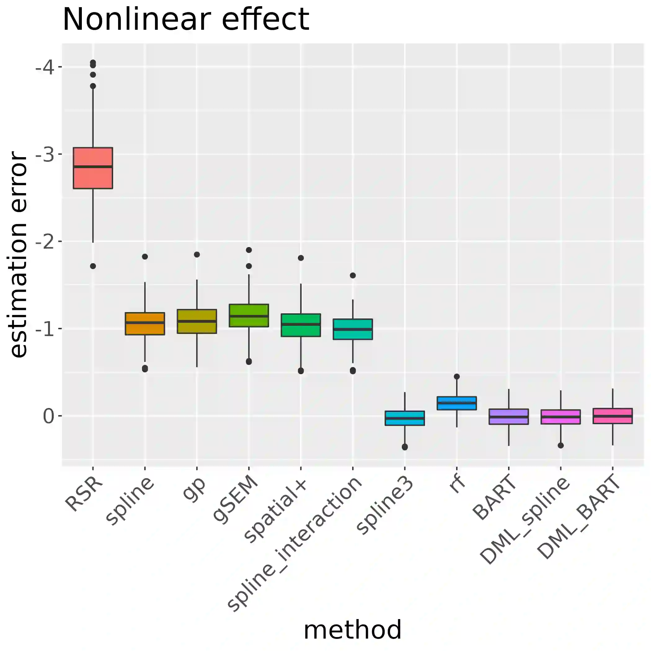 翻译:最近,解决空间混乱已成为空间统计中的一个主要专题,然而,文献提供了相互矛盾的定义,许多拟议定义没有涉及因果推断中理解的混淆问题。我们将空间混淆定义为空间结构存在一种未计量的因果混淆体,我们提出一个因果推断框架,用于在空间混乱的情况下,对持续暴露对结果的因果关系进行非对数识别;我们提议采用双机学习(DML)程序,采用灵活模型,重新推卸对融合者的接触和结果变量,以得出一个具有有利稳健特性和趋同率的因果关系估计器,我们证明这种方法在空间依赖下是一贯和偶然正常的。据我们所知,这是在确定和估计时不依赖限制性的对准假设(如线性、效应同质性或高斯尼)进行空间重叠的第一方法。我们展示了DML方法在分析和模拟中对于孕期的精度影响的好处。我们在加利福尼亚州的实验中运用了比重法和推理研究。我们运用了在妊娠期和模拟中对重度风险的影响。