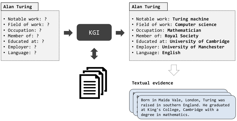 翻译:自动从某个文件集中自动引入高质量的知识图表仍然是AI中一个具有挑战性的问题。 在这个问题上取得进展的方法之一是在称为空档填充的相关任务中取得进展。 在这项任务中,鉴于实体询问的形式是[实体、空档?],要求一个系统通过生成或提取从某个文件集的相关段落中提取的证据来填补空档,从而生成或提取缺失的价值,从而利用从某个文件集的相关段落中提取的证据。最近实地工作试图利用基于检索的语言模型以端到端的方式解决这项任务。在本文中,我们提出了一个新颖的空档填充方法,以硬负值和强的回收增强生成模型培训程序延长密集通道检索。我们的模型报告说,在填充数据集的T-REx和zsRE两个空档上都有很大改进,改进了通道检索和空档价值生成,并在KILT领导板上排名第一一位。此外,我们展示了我们的系统在显示其域适应能力方面的能力,通过零/fshush的组合来显示用于空档填充料的TRA数据集的新变版。