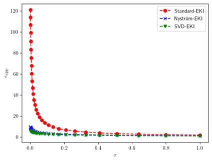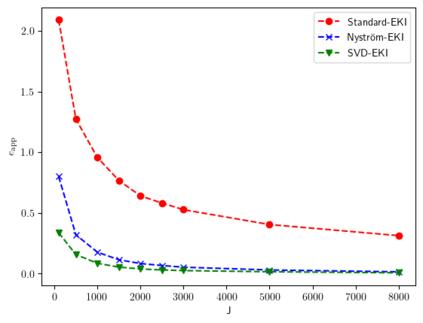 翻译:在本文中,我们证明,对于线性反问题,共通的Kalman反向反向反向反向反向反向可被等同于Tikhonov正规化的随机低端近似值。 这一观点使我们能够采用基于Nystr\'om方法的替代抽样计划, 提高实际性能。 此外, 我们还在样本大小与正规化参数相结合的情况下, 开发了共通Kalman反向反向的适应性版本。 我们根据标准假设证明, 如果差异原则被用作停止标准, 则拟议方案将产生最优化的顺序规范化方法 。