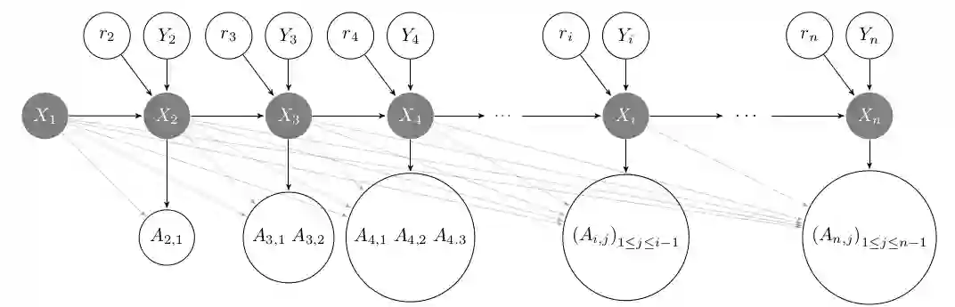 翻译:我们引入了时空动态网络增长模型Markov随机几何图(MRGGs),即时间动态网络的增长模型。该模型基于Markovian潜潜伏空间动态:利用未知的Markov内核,在Euclidean Sphere中用未知的Markov内核对连续潜伏点进行取样;两个节点与概率相关,取决于其潜在大地测量距离的未知函数。更准确地说,在每次印记时,我们从先前的XK-1号中跳跃到一个统一选择的Yk-1号方向并用从一个未知分布中抽出称为纬度函数的长度 rk 来添加一个潜伏点X k。每对节点之间的连接概率与这两个潜伏点之间的距离的信封函数相等。我们为对纬度和信封函数的非参数估计提供理论保证。我们建议一种高效的算法,根据高压的群集法方法实现这些非参数估计任务,我们将这一分析运用在通过在社会网络上交换信息而得出的真实数据设置。
