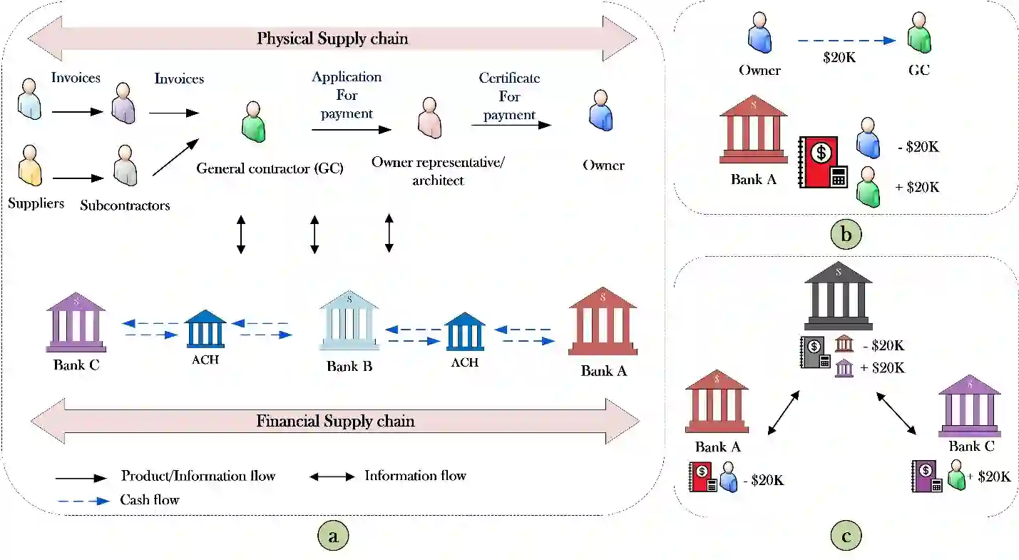 翻译:建筑和工程行业的供应链一体化仍然是一个难以实现的目标。高度分散和对第三方金融机构的依赖已经将有形和金融供应链分开。文件表明,在利用基于产品流动的资金流动调节资金流动时,基于链式加密资产(加密货币和加密符号)如何能解决这一限制。文件对比了依赖菲亚特货币和加密资产的付款结算的供应链中现金和产品流动的一体化。还进一步引入了由加密资产带动的整合的两个方面,即原子化和颗粒化。该论文在建筑进度付款的背景下得到验证。无人驾驶航空和地面车辆收集的自建数据被传递到一个自主的智能合同方法,该方法利用加密证券和加密符号进行付款结算;由此而成的付款数据集在产品和现金流动的整合方面得到了分析。工作结束时讨论了调查结果及其对工业的影响。