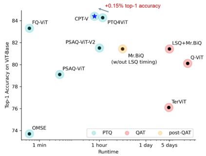翻译:在考虑培训后量化时,先前的工作通常侧重于开发混合精密计划或学习分配量化网络的最佳方法。在我们的工作(CPT-V)中,我们审视了提高已经量化的网络准确性的一般方法,只是通过扰动量化尺度来提高量化网络的准确性。从自我监督的学习中借用了对比性损失的概念,我们找到了一种强有力的方法,用仅仅1,000个校准图像来联合尽量减少损失功能。为了确定最佳的量化规模,CPT-V以自我监督的方式对比量化和完全精确模型的特征。与传统的基于重建的损失功能不同,使用对比性损失功能不仅奖励了量化和完全精准的输出之间的相似性,而且还有助于在给定批量内将量化产出与其它产出区别开来。此外,CPT-V建议以轮进方式进行进化研究,以尽量减少全球的对比性损失规模,从而能够以自我监督的方式以自我监督的方式改进现有愿景转换(ViT)的量化和完全精确性模型的特性。在VAL-VBS-Qal-Qal-Qal-Qal-Ial-Ial-al-Ial-Ial-Qalizalizal-Qalizal-Qal-Iental-Iental-Iental-Iental-Ient 4 ex-Ial-Ial-Ial-Iental-Iental ex-I) 4 a a ex exal ex ex exal exal ex exalizalizalizal 4 a exxx。