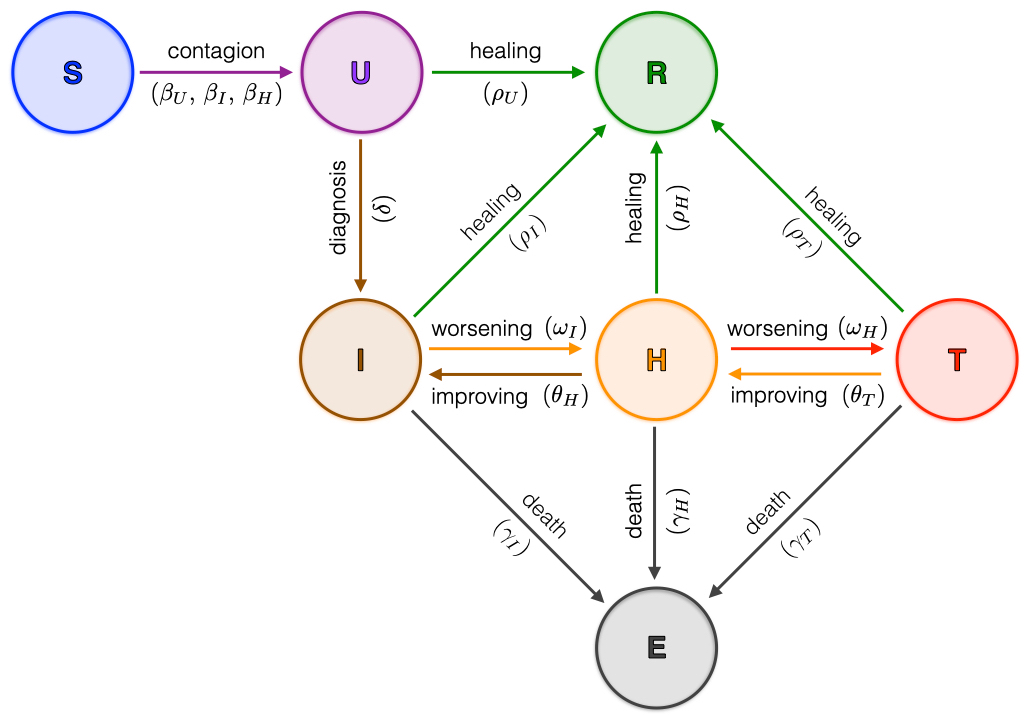 翻译:COVID-19流行病是上个世纪影响人类的一长串流行病的最后一个。在本文中,我们从由以下七个组成部分组成的七个组成部分的名称中提议了一个名为SUIHTER的新型数学流行病学模型:易受感染的未感染者(S),未发现(无症状和症状)感染者(U)、孤立(I)、住院(H)、威胁(T)、绝种(E)和回收(R)的(COVID-19)流行病)。根据最小方块法和Markov链链链蒙特卡洛(MCMC)方法的结合使用,提出了适当的参数校准。然后,提出了一种适当的参数校准,目的是要重新生成意大利流行病的过去历史,该流行病在2月下旬出现,至今仍在持续,并且从预测能力的角度验证SUIHTER。新模型的一个特征是,它允许在模型和意大利公民保护每天提供的数据之间采用一对一校准战略。然后,新的模型应用于意大利流行病的分析,重点是2020年秋季爆发的第二次爆发。我们特别地展示了国家流行病学模型的预测。