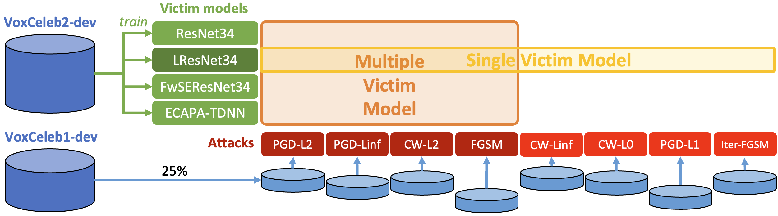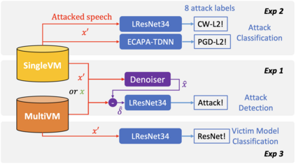 Adversarial examples have proven to threaten speaker identification systems, and several countermeasures against them have been proposed. In this paper, we propose a method to detect the presence of adversarial examples, i.e., a binary classifier distinguishing between benign and adversarial examples. We build upon and extend previous work on attack type classification by exploring new architectures. Additionally, we introduce a method for identifying the victim model on which the adversarial attack is carried out. To achieve this, we generate a new dataset containing multiple attacks performed against various victim models. We achieve an AUC of 0.982 for attack detection, with no more than a 0.03 drop in performance for unknown attacks. Our attack classification accuracy (excluding benign) reaches 86.48% across eight attack types using our LightResNet34 architecture, while our victim model classification accuracy reaches 72.28% across four victim models.