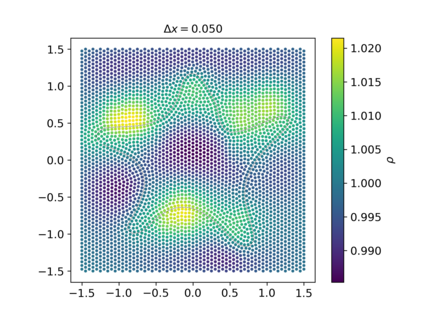 翻译:在粒子分布一致的情况下,SPH方法更准确。因此,在复杂边界存在的情况下,为了对流动进行时间精确的模拟,一个人必须既要有准确的边界分解,也要有统一的粒子分布以启动模拟。获得粒子初步统一分布的过程称为“粒子包装”。本文采用并比较了文献中的各种粒子包装算法。提议采用改进的SPH算法,在两个和三个维度上产生流体和固态区域的统一粒子分布。设计了一些具有挑战性的地理特征,以显示新算法的准确性。算法的实施是开源的,手稿完全可以重新制作。