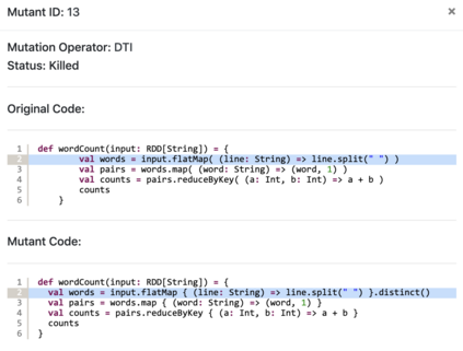 翻译:我们提议了TRANSMUT-Spark, 这是一种将大数据处理码的突变测试过程自动化的工具。 Apache Spark 是大数据处理的引擎。 它隐藏了大数据平行和通过内在功能、基本平行程序和数据管理战略进行分布编程和处理所固有的复杂性。 然而, 程序设计者必须巧妙地将这些功能结合到程序内部, 并指导引擎使用正确的数据管理战略, 以利用大数据处理所需的大量计算资源, 并避免大量生产损失。 游戏程序内许多数据处理代码的编程细节容易出现需要正确和自动测试的虚假报表。 本文探讨了在电源程序内应用突变测试, 这是一种基于错误的测试技术, 依赖错误模拟来评估和设计测试装置。 论文介绍了用于测试火花程序的TRANSMUT-Spoint解决方案。 TRANDMUT-Spoint 自动显示程序最艰苦的步骤, 并充分实施突变试验过程。 本文描述了变体的自动生成、 测试执行和适当分析阶段, 也用TRAMUTS-Sprint 来模拟测试。