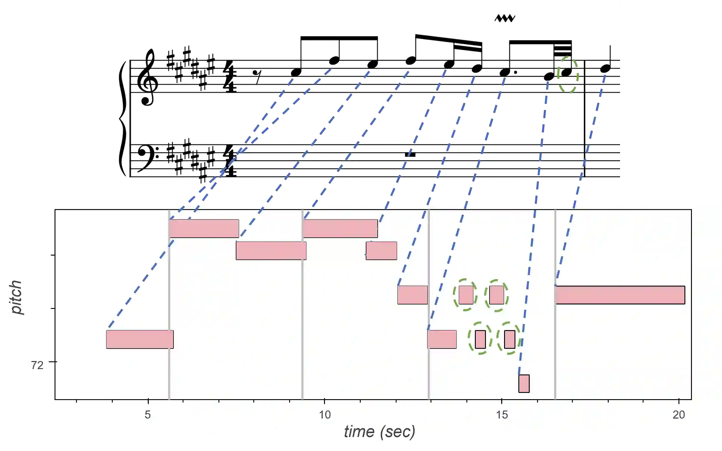 翻译:本文介绍了匹配的规格: 一种文件格式, 将MIDI 人的性能与笔记、 击打和击败级别相匹配, 与相应的乐谱相匹配。 这使得能够对与各种任务相关的性能进行高级分析, 比如表现性表现模型、 分数后、 音乐转录和表演者分类。 匹配文件包含一套与得分有关的描述符, 使得它也可以作为光骨头分表示。 对于需要使用结构性得分元素( 比如声音、 部件、 梁、 细线) 的应用程序, 匹配文件可以很容易地与符号得分合并。 为了支持我们工作的实际应用, 我们发布了一套经过校正和升级的 Vienna4x22 的分数和性能数据集, 与匹配文件一致 。