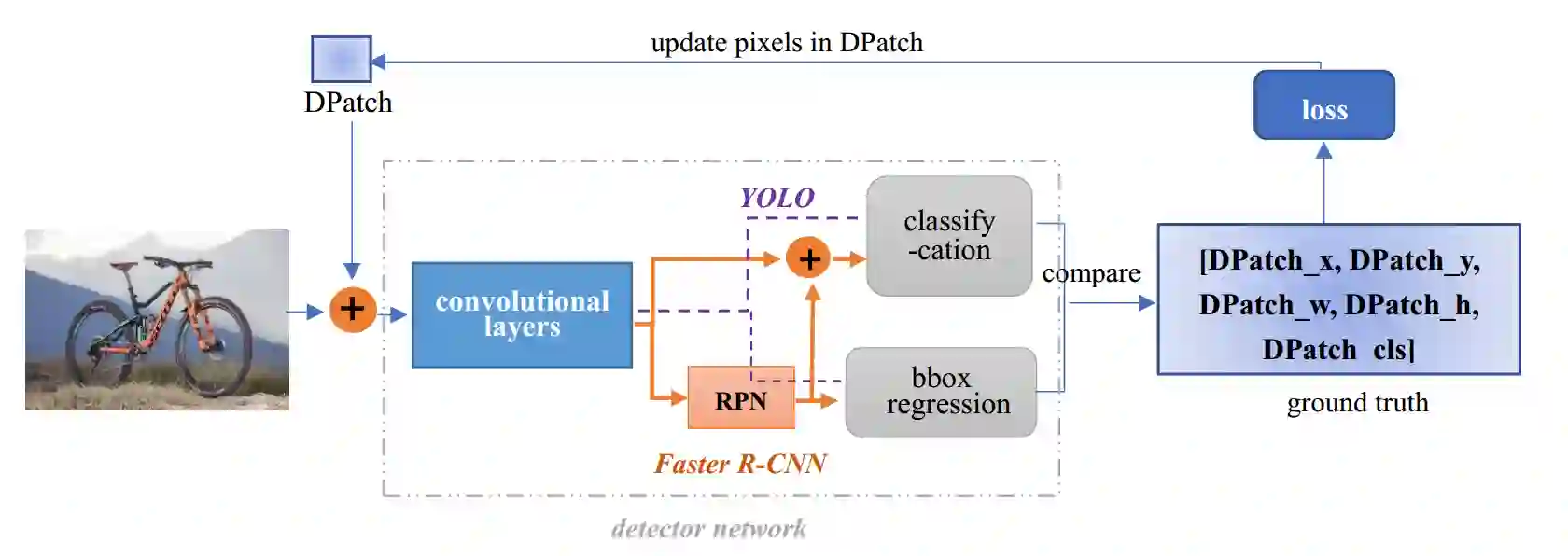 翻译:在现代计算机视觉系统中,天体探测器已成为一个不可或缺的模块。 面对对抗性攻击,它们的脆弱性因此成为需要考虑的重要问题。 在这项工作中,我们建议DPatch, 即对主流物体探测器(即快速 R-CNN 和 YOLO)进行对抗性攻击。 与最初只操控图像级分类器的对立面补丁不同,我们的DPatch同时优化了捆绑框的位置和分类目标,从而使其无法进行预测。 与先前的工程相比,DPatch具有若干吸引人的特性:(1) DPatch能够实施非针对性和有针对性的有效攻击,使快速R-CNN和YOLO的MAP分别从70.0%和65.7%降低到1%以下;(2) DPatch规模小,其攻击效果取决于位置,因此实施真实世界级攻击非常实用;(3) DPatch同时优化了不同探测器结构之间的巨大可转移性,以便使其无法进行预测。 例如, 接受过快速R-CN基础训练的DPatch可以有效攻击YOLO,反之亦然。 广泛的评价意味着DPatch能够根据黑箱的内在识别结构进行有效的攻击。