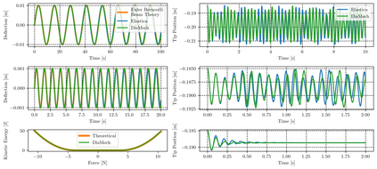 Fast, accurate, and generalizable simulations are a key enabler of modern advances in robot design and control. However, existing simulation frameworks in robotics either model rigid environments and mechanisms only, or if they include flexible or soft structures, suffer significantly in one or more of these performance areas. To close this "sim2real" gap, we introduce DisMech, a simulation environment that models highly dynamic motions of rod-like soft continuum robots and structures, quickly and accurately, with arbitrary connections between them. Our methodology combines a fully implicit discrete differential geometry-based physics solver with fast and accurate contact handling, all in an intuitive software interface. Crucially, we propose a gradient descent approach to easily map the motions of hardware robot prototypes to control inputs in DisMech. We validate DisMech through several highly-nuanced soft robot simulations while demonstrating an order of magnitude speed increase over previous state of the art. Our real2sim validation shows high physical accuracy versus hardware, even with complicated soft actuation mechanisms such as shape memory alloy wires. With its low computational cost, physical accuracy, and ease of use, DisMech can accelerate translation of sim-based control for both soft robotics and deformable object manipulation.