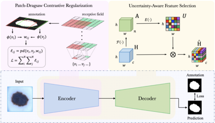 翻译:医学图象分解已被公认为临床诊断、分析和治疗规划的枢纽程序,然而,艰苦和昂贵的批注过程会减慢进一步进展的速度。 以学习为基础的对比性加权前训练通过利用未贴标签的数据来学习良好的代表性,提供了一种替代办法。 在本文件中,我们调查对比性学习如何有利于一般监督的医疗分解任务。 为此,建议补丁拖拉锯对比性规范(PDCR)在连续的亲近得分控制范围内进行补丁级拖网和反射。 新的结构称为不确定性特征选择块(UAAFS)是为了执行特征选择过程,它可以处理由高度不确定的少数特征造成的学习目标变化。 通过将拟议的2个模块插进现有的分解结构,我们实现了6个领域的8个公共数据集的最新结果。新设计的模块将培训数据进一步降低到四分之一,同时实现可比较性(如果不是更好的话)业绩。 从这个角度出发,我们从原始的自我/不统一标签中走反方向。