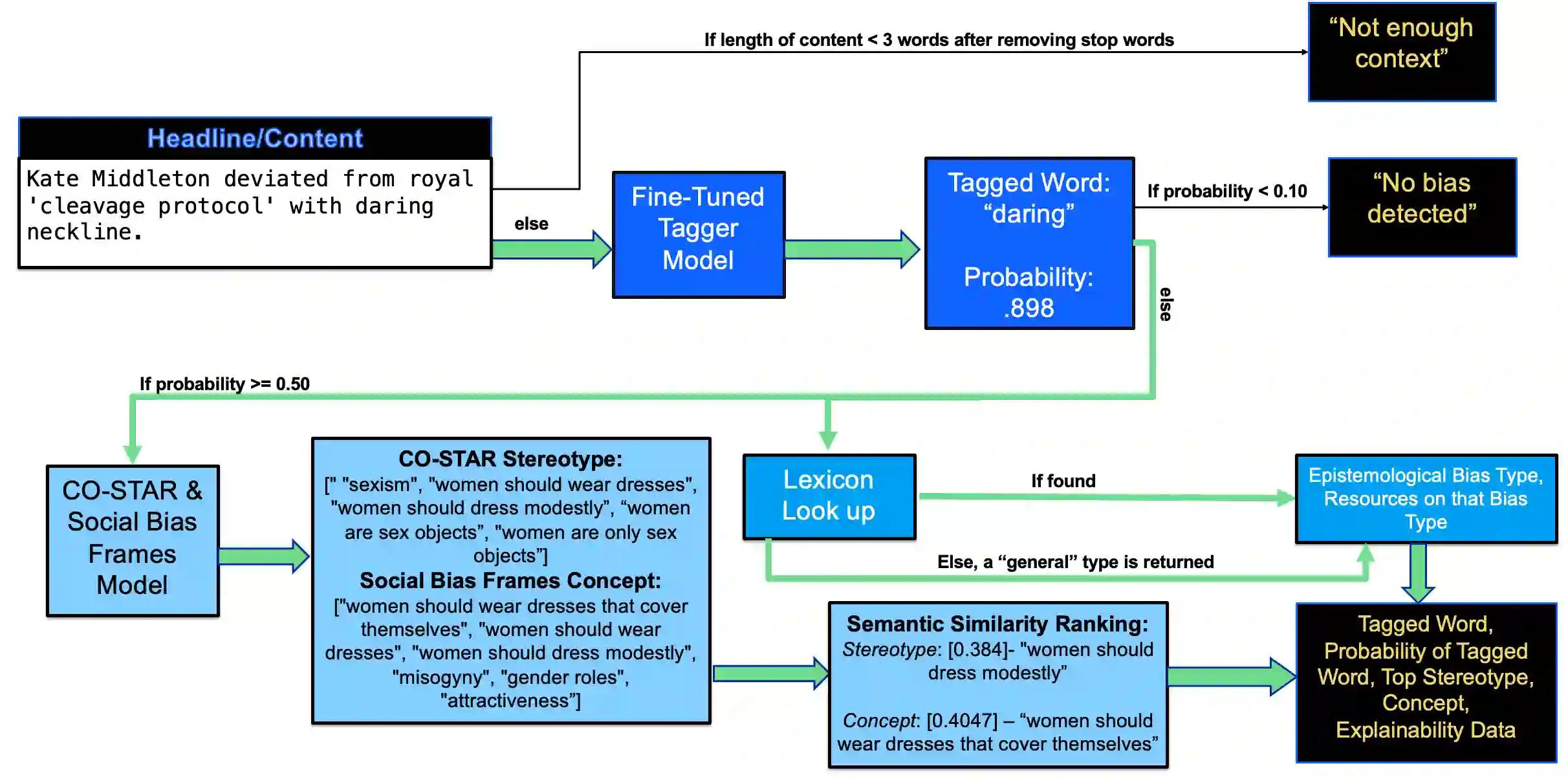Injustice occurs when someone experiences unfair treatment or their rights are violated and is often due to the presence of implicit biases and prejudice such as stereotypes. The automated identification of injustice in text has received little attention, due in part to the fact that underlying implicit biases or stereotypes are rarely explicitly stated and that instances often occur unconsciously due to the pervasive nature of prejudice in society. Here, we describe a novel framework that combines the use of a fine-tuned BERT-based bias detection model, two stereotype detection models, and a lexicon-based approach to show that epistemological biases (i.e., words, which presupposes, entails, asserts, hedges, or boosts text to erode or assert a person's capacity as a knower) can assist with the automatic detection of injustice in text. The news media has many instances of injustice (i.e. discriminatory narratives), thus it is our use case here. We conduct and discuss an empirical qualitative research study which shows how the framework can be applied to detect injustices, even at higher volumes of data.