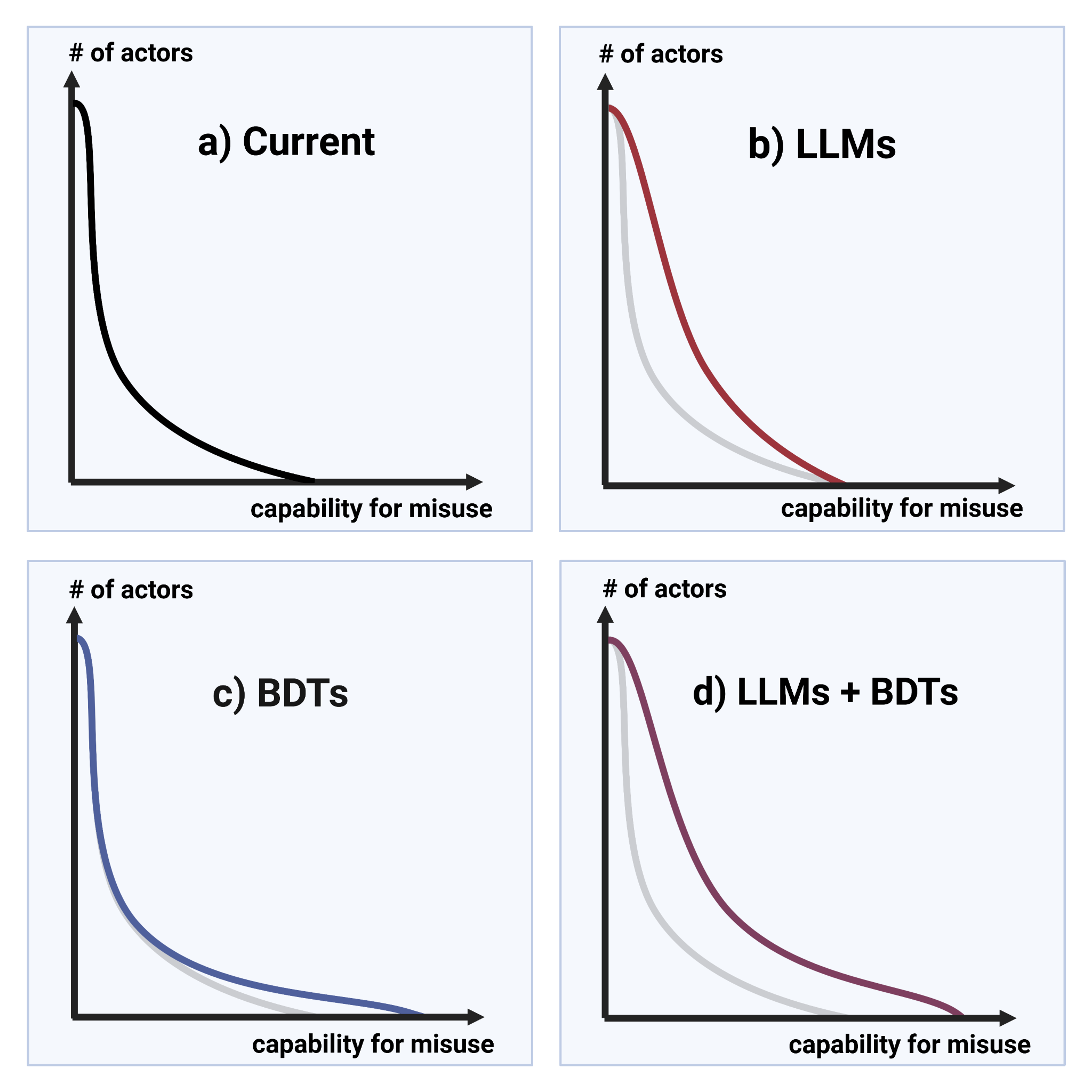 As advancements in artificial intelligence (AI) propel progress in the life sciences, they may also enable the weaponisation and misuse of biological agents. This article differentiates two classes of AI tools that pose such biosecurity risks: large language models (LLMs) and biological design tools (BDTs). LLMs, such as GPT-4, are already able to provide dual-use information that removes some barriers encountered by historical biological weapons efforts. As LLMs are turned into lab assistants and autonomous science tools, this will further increase their ability to support research. Thus, LLMs will in particular lower barriers to biological misuse. In contrast, BDTs will expand the capabilities of sophisticated actors. Concretely, BDTs may enable the creation of pandemic pathogens substantially worse than anything seen to date and could enable forms of more predictable and targeted biological weapons. In combination, LLMs and BDTs could raise the ceiling of harm from biological agents and could make them broadly accessible. A range of interventions would help to manage risks. Independent pre-release evaluations could ensure that developers have eliminated dangerous capabilities of new models. Risks from powerful science tools might be mitigated through providing differentiated access to legitimate researchers. Lastly, essential for mitigating risks will be universal and enhanced screening of gene synthesis products.
