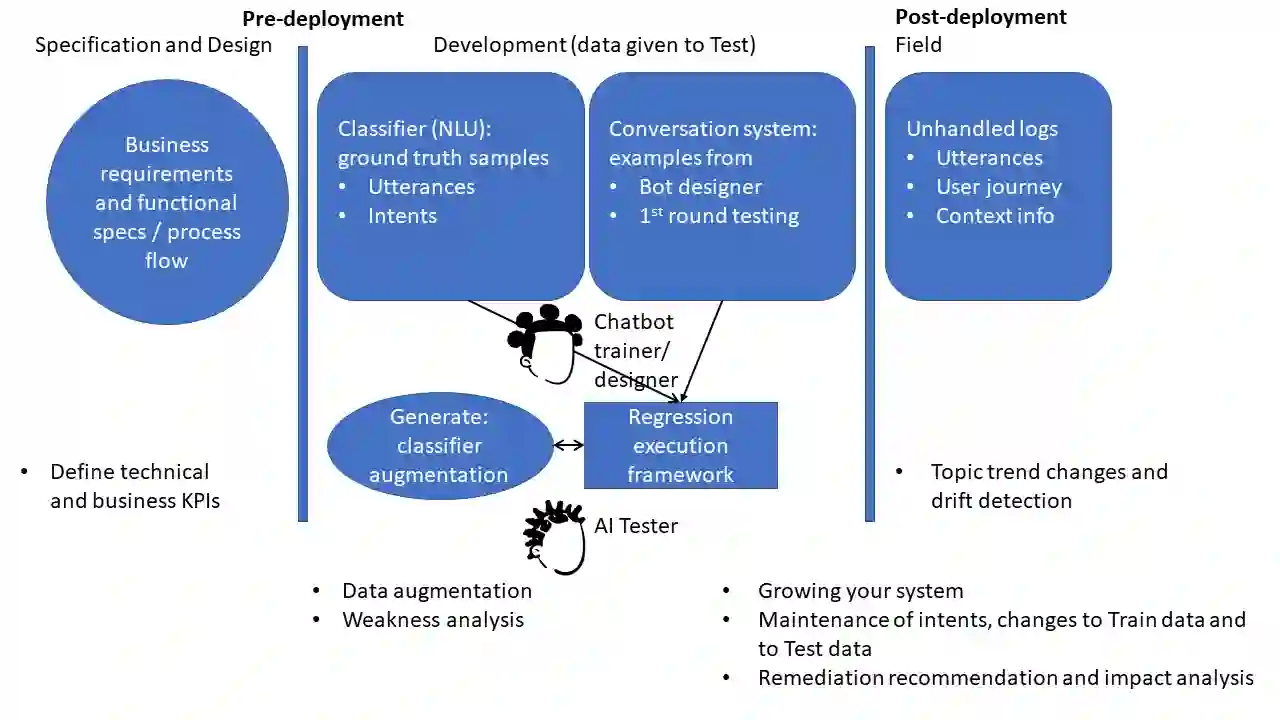 翻译:聊天室系统或聊天室是AI-Infused Applications(AIIA)的一个例子。 聊天室具有特别重要的意义,因为它们往往是企业客户与企业的第一次互动,是企业进入AI(人工智能)世界的切入点。 因此,聊天室的质量是关键。 然而,正如对AIDAA来说,评估和控制聊天室系统的质量尤其困难。除了这些系统的内在统计性质外,偶尔的聊天不为人所接受,我们发现两大挑战。首先,公布一个具有足够质量的初始系统,使人类与企业进行互动。第二,保持质量,加强其能力,改进它,并根据用户要求的变化或漂移情况作出必要的调整。这些挑战存在,因为无法预测用户请求的真实分布情况和它们用来表达这些请求的自然语言。此外,任何请求的经验分布都有可能随着时间的推移而发生变化。这可能是由于周期性、改变使用和议题的漂移。我们为在自由用户中应用了一种方法并设置一套技术来应对这些挑战,从而在人类的周期性阶段实施后期操作方法。 这些挑战,在人类生活前的自动设计过程中,我们通过不同的手法提供了一种手法。 在人类的整合中,我们通过不同的手法中,我们通过不同的手法的操作中提供了一种手法的操作, 提供了一种手法的预的操作, 。在人类的操作中提供了一种手法的预的操作,在人类的操作,通过不同的操作,通过不同的操作,通过不同的操作,在人类的操作中提供了一种手法的操作,通过不同的操作,通过不同的操作,通过不同的操作。 提供了一种过程,在人类的预的操作式的操作,在人类的操作,通过不同的操作,通过不同的操作过程的操作过程的操作,通过不同的操作中提供我们提供了一种过程的操作过程的操作,通过不同的操作,在人类的转换。在人类的预的操作的操作的操作的操作,通过不同的操作的操作的操作中提供过程提供。,在人类的操作,在人类的操作中的自动的操作的操作,通过不同的操作中提供过程的预的操作,通过不同的操作,通过不同的操作的操作的操作的操作的操作,通过不同的操作中提供中提供中提供过程的预提供我们的预的预的操作。