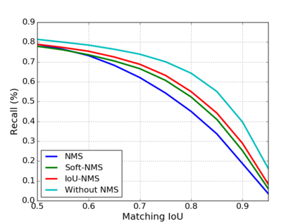 翻译:以CNN为基础的现代物体探测器依靠捆绑盒回归和非最大抑制来将物体本地化。 虽然类标签的概率自然反映了分类信任度, 但本地化信心却不存在。 这使得适当本地化的捆绑盒在迭代回归过程中退化, 甚至在NMS期间被抑制。 在论文中, 我们建议IoU-Net学习预测每个检测到的捆绑盒和匹配的地面实况之间的IOU。 网络获得了这种本地化的信心, 通过保存精确的本地化框来改进NMS程序。 此外, 还提出了一种基于优化的捆绑盒改进方法, 将预测的IoU配为目标。 MS- COCO数据集的广泛实验显示了IM- CO- 数据集的有效性, 以及它与若干状态的物体探测器的兼容性和适应性。