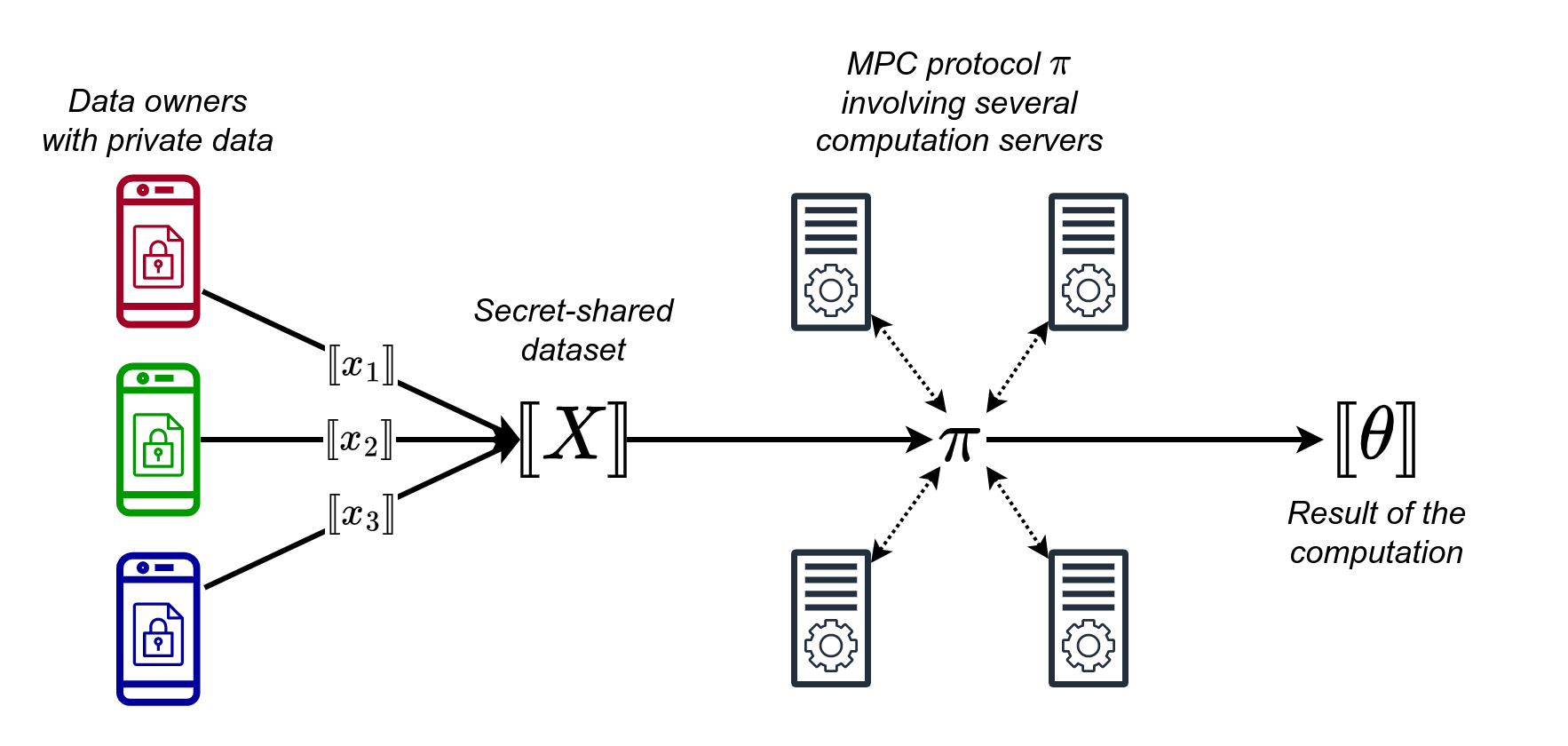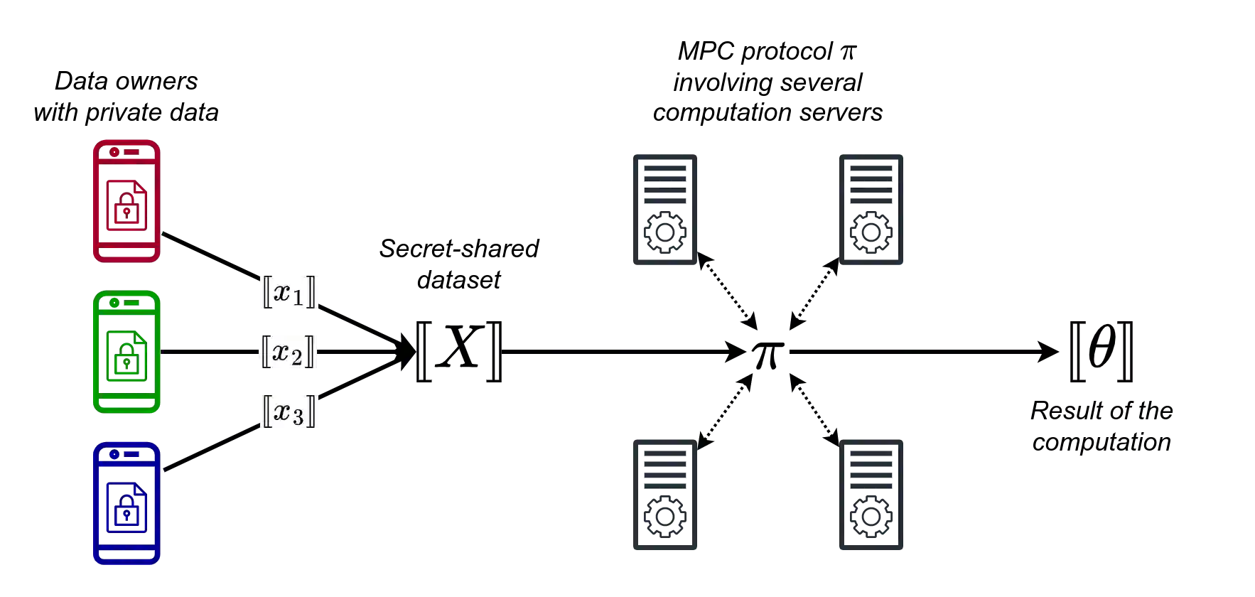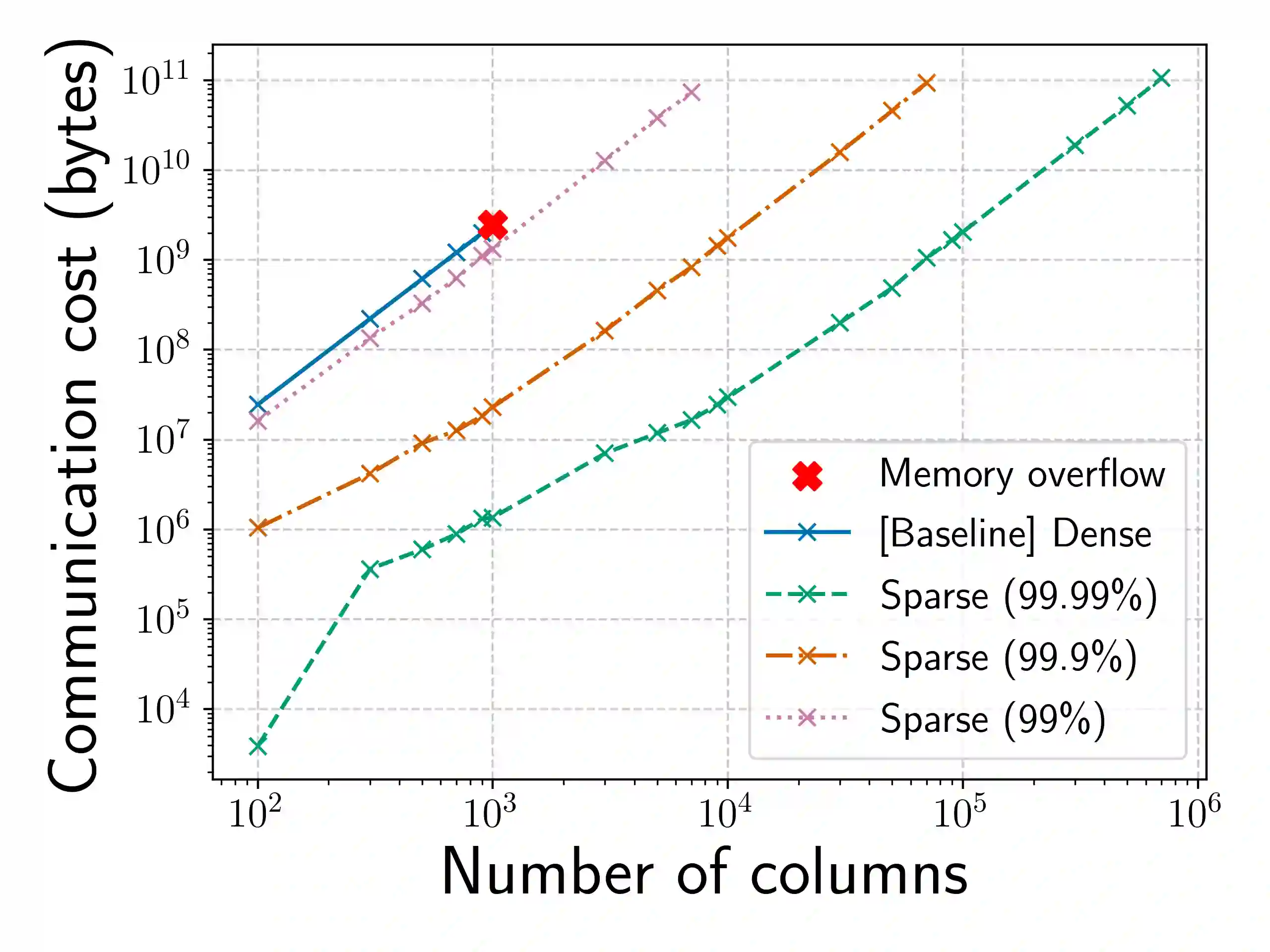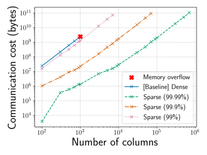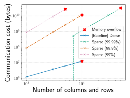 To preserve privacy, multi-party computation (MPC) enables executing Machine Learning (ML) algorithms on secret-shared or encrypted data. However, existing MPC frameworks are not optimized for sparse data. This makes them unsuitable for ML applications involving sparse data, e.g., recommender systems or genomics. Even in plaintext, such applications involve high-dimensional sparse data, that cannot be processed without sparsity-related optimizations due to prohibitively large memory requirements. Since matrix multiplication is central in ML algorithms, we propose MPC algorithms to multiply secret sparse matrices. On the one hand, our algorithms avoid the memory issues of the "dense" data representation of classic secure matrix multiplication algorithms. On the other hand, our algorithms can significantly reduce communication costs (some experiments show a factor 1000) for realistic problem sizes. We validate our algorithms in two ML applications in which existing protocols are impractical. An important question when developing MPC algorithms is what assumptions can be made. In our case, if the number of non-zeros in a row is a sensitive piece of information then a short runtime may reveal that the number of non-zeros is small. Existing approaches make relatively simple assumptions, e.g., that there is a universal upper bound to the number of non-zeros in a row. This often doesn't align with statistical reality, in a lot of sparse datasets the amount of data per instance satisfies a power law. We propose an approach which allows adopting a safe upper bound on the distribution of non-zeros in rows/columns of sparse matrices.