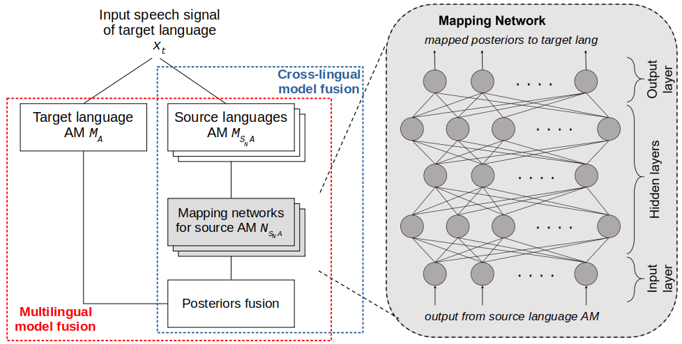 翻译:多语言语言的承认作为弥补低资源语言数据稀缺的有效途径,引起了人们的极大关注。主要因为没有词汇要求,端到端(e2e)建模优于常规混合系统,主要因为没有词汇要求。不过,在有限的数据假设情况下,混合的DNN-HMM-MM-MM-MM-MM-MM-MSP仍然优于e2e2e-e2e模型;此外,手动词汇创建问题已经通过公开提供的经过培训的石墨到语音模型(G2P)和文本转换成IPPA许多语言的文本而得到缓解。在本文中,在为低资源语言建立的多语种设置中,建议采用混合的DNNN-HMM的声学模型(e2e)模型。不同单一语言的声学模型对目标语言语言语音语音信号的外源分布是结合的。对每种源目标语言配对进行单独的回归神经网络进行了培训,以将后方语言从源声模型转换成目标语言。这些网络需要与ASR培训相比,需要非常有限的数据。骨质聚合聚合聚合组合产生14.65%和6.5%的相对收益,而与单语言基准相比,可以比较从多语和单语言分别从多语言模型展示。